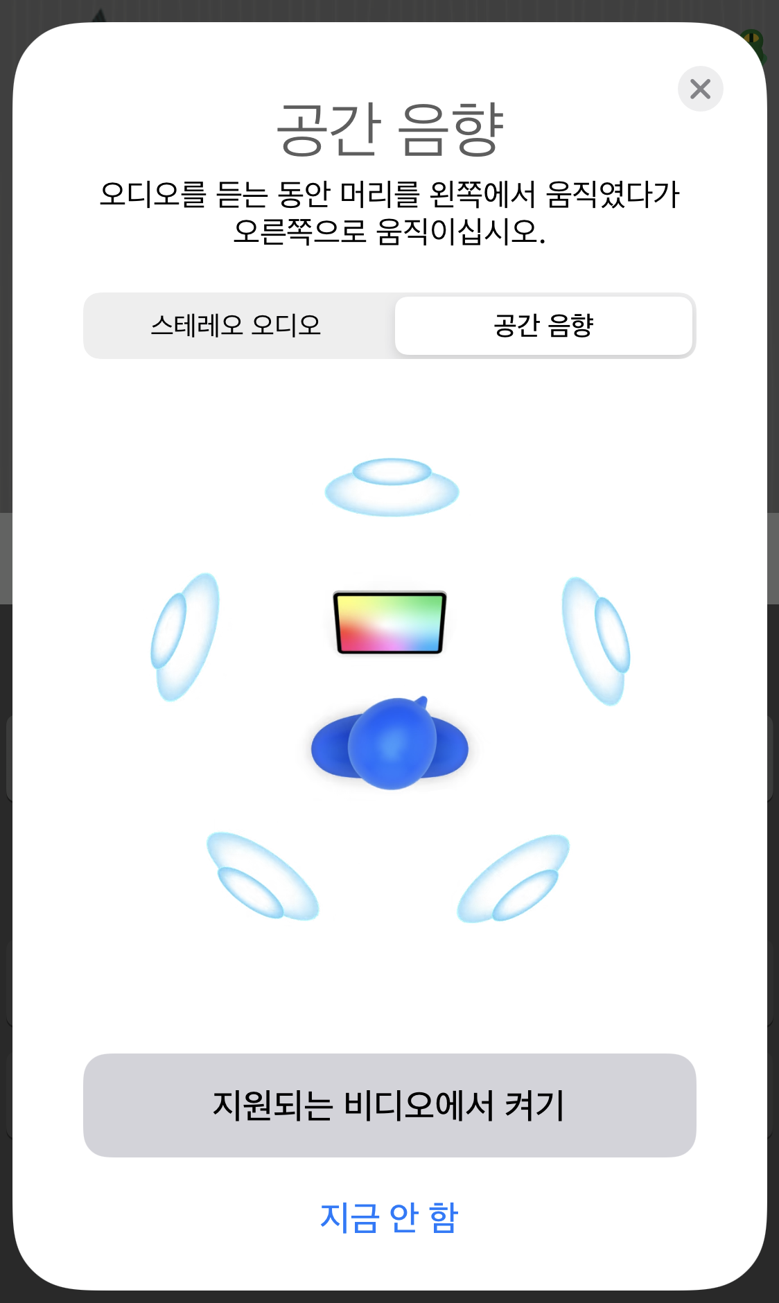 영상 콘텐츠가 없어서 에어팟의 공간음향을 테스트 해 볼 수 있는데