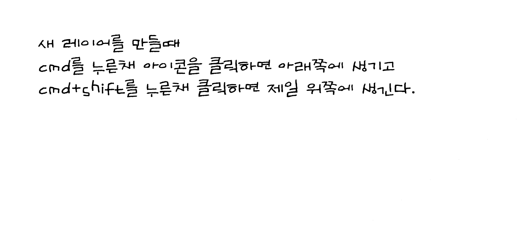 기존 레이어 위 아래에의 원하는 위치에 새로운 레이어를 만들 수 있다.