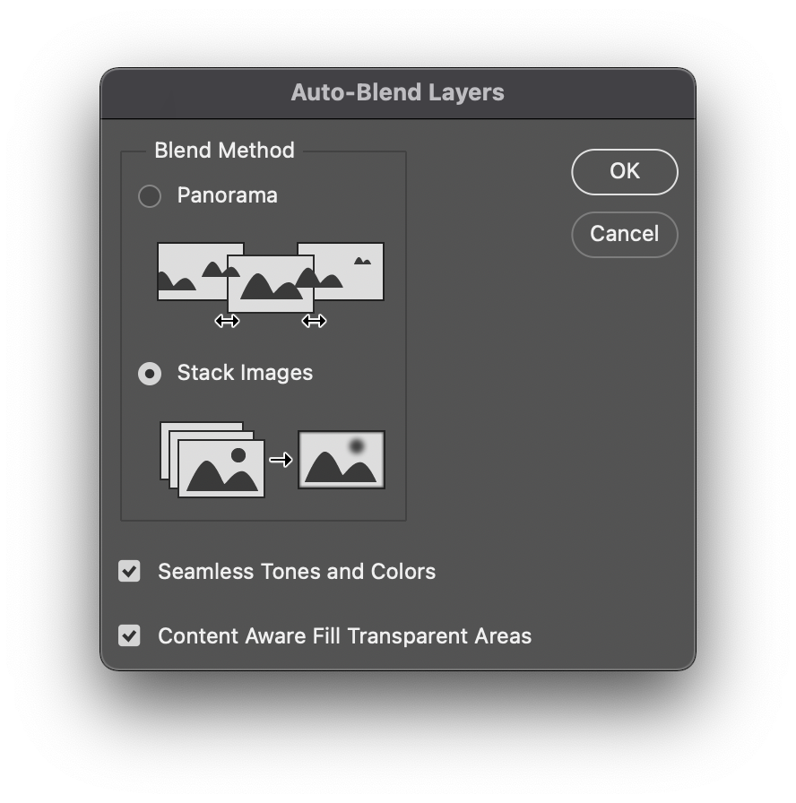 [edit]-[auto blend layers]를 실행한다.