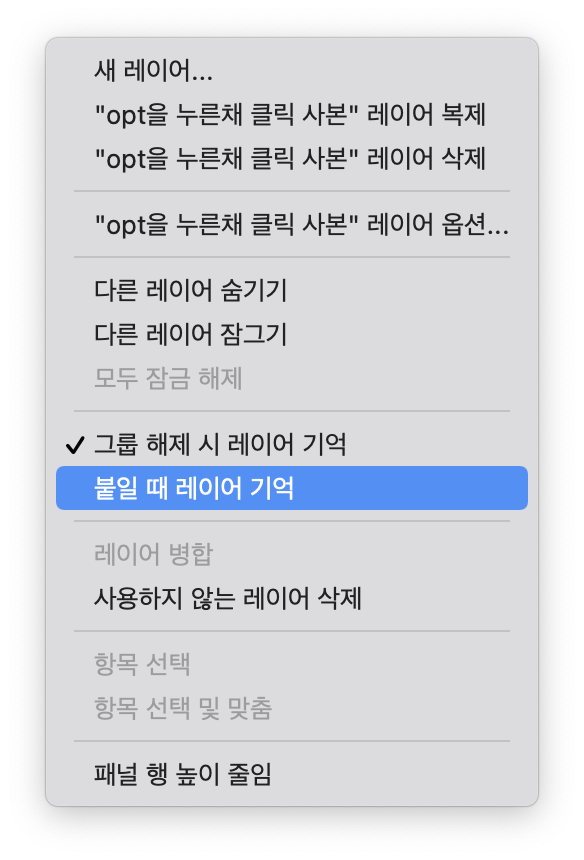 '붙일 때 레이어 기억'이라는 기능도 있더라