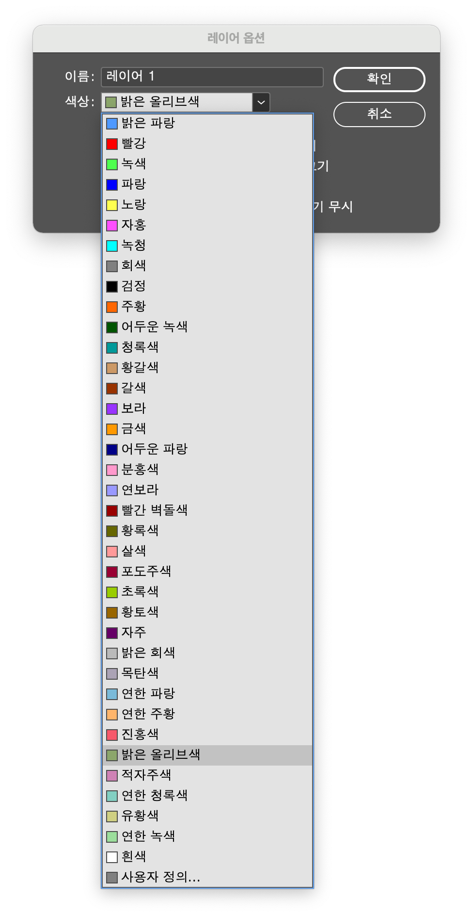 레이어를 만들면 기본적으로 파랑, 빨강, 등 기본적인 색상만 사용했었는데