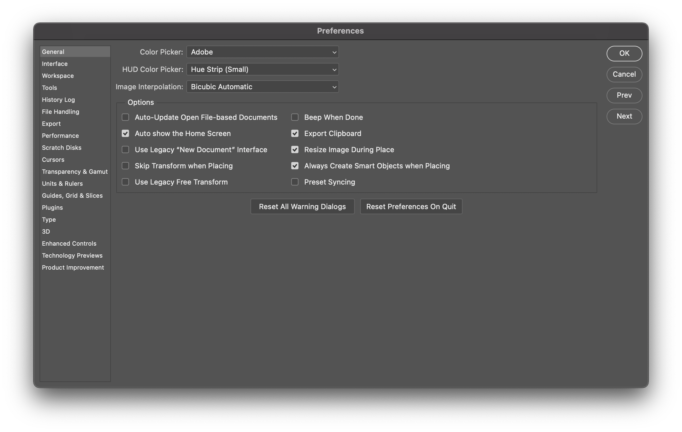 포토샵의 환경설정 일반(general)부분을 보면 always create smart objects when placing 옵션이 디폴트값으로 되어있다.