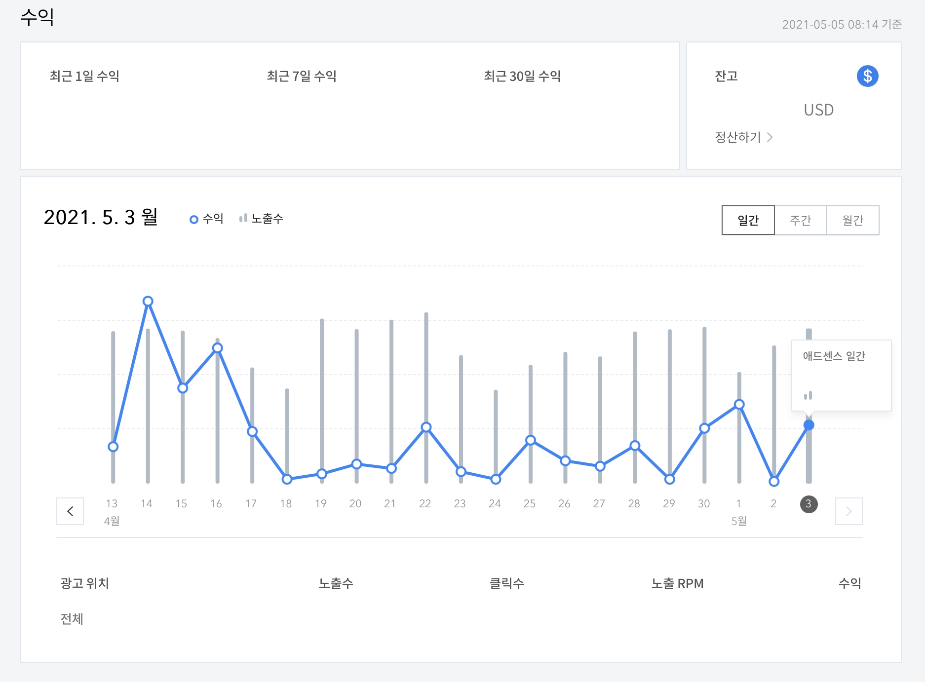 아님 그냥 원래 방식대로 해서 진행됐던건지.. 어쨌든 계속 애드센스 수익이 매일 발생하고 있었으니 뭐가 안됐던건 아니지만