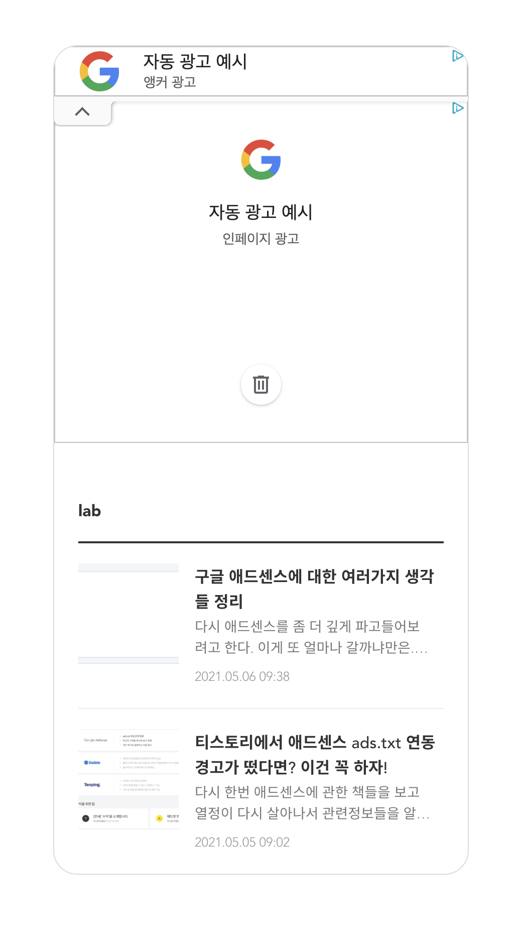 마지막으로 광고페이지를 좀 살펴봤는데 이건 자동광고에만 적용이 되는건 아닌것 같고