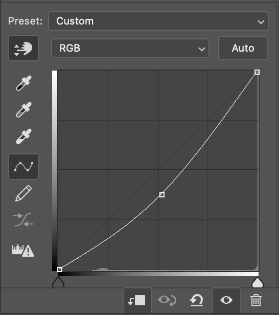 그럼 내가 스포이드로 선택한 부분의 컬러값이 어디인지 커브 그래프에서 점이 하나 생긴다.