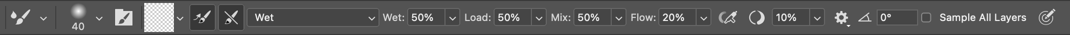 옵션은 wet으로 하고 wet옆에 있는 브러시만 체크하고 그 옆은 체크를 해지해야 한다.