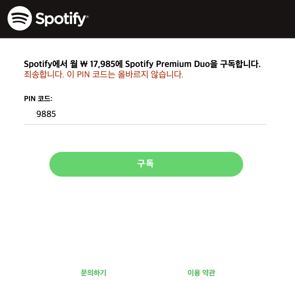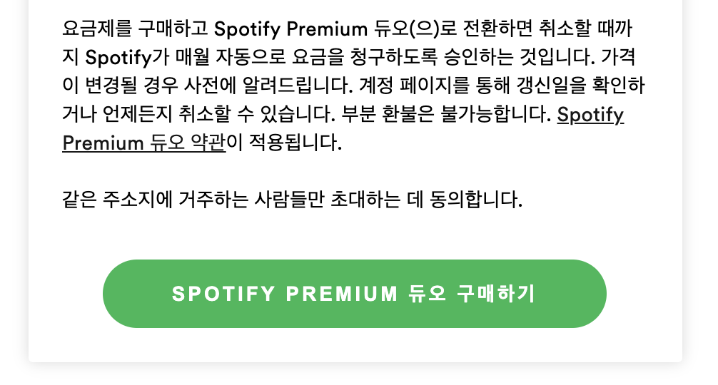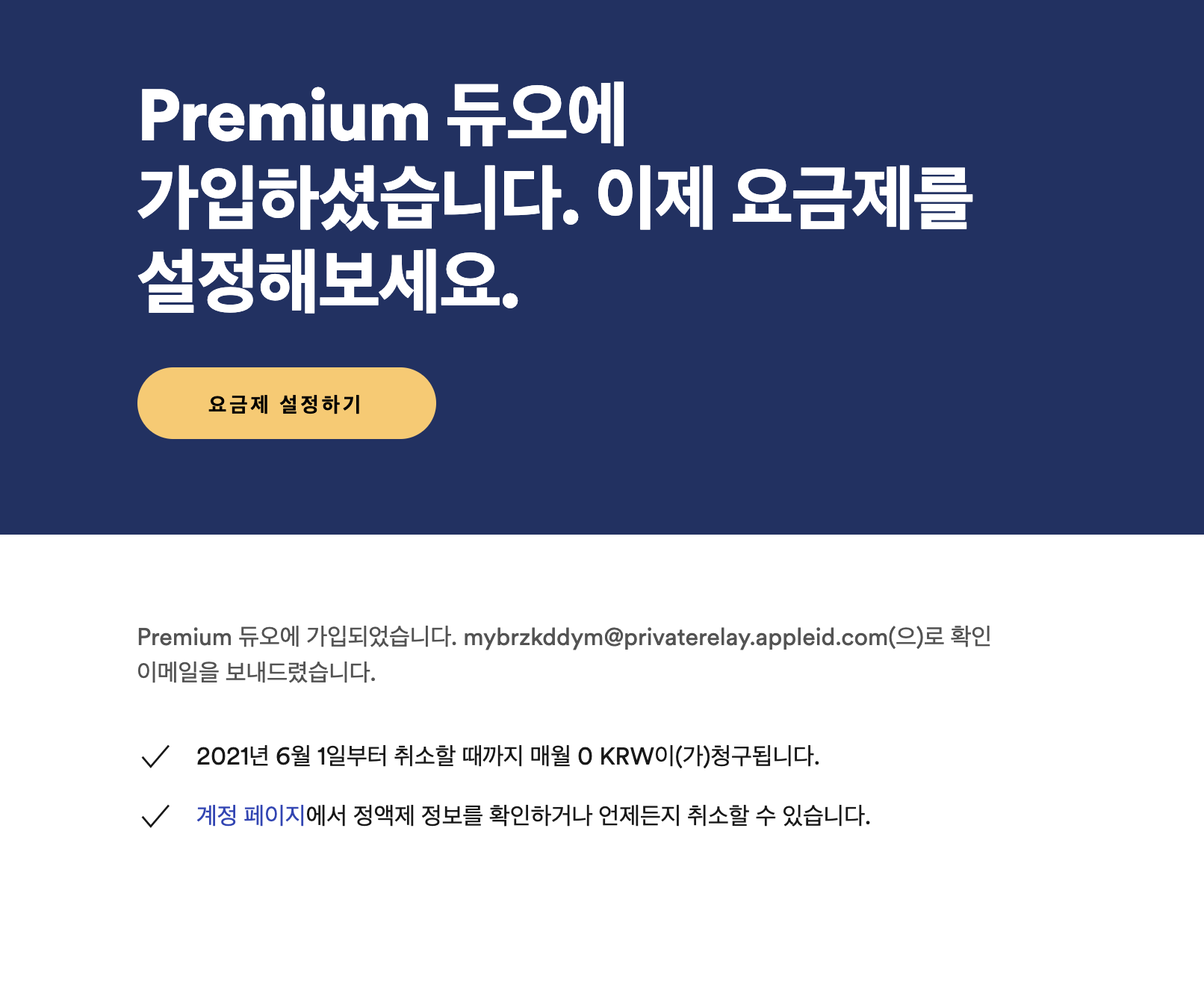 어쨌든 다시 진행을 하니 무료로 spotify premium duo에 가입을 했다.