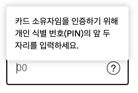 이거 뭔지 몰라서.. 나중에 알고보니 그냥 카드 비밀번호 앞 두자리를 입력하라는 거였다.!!
