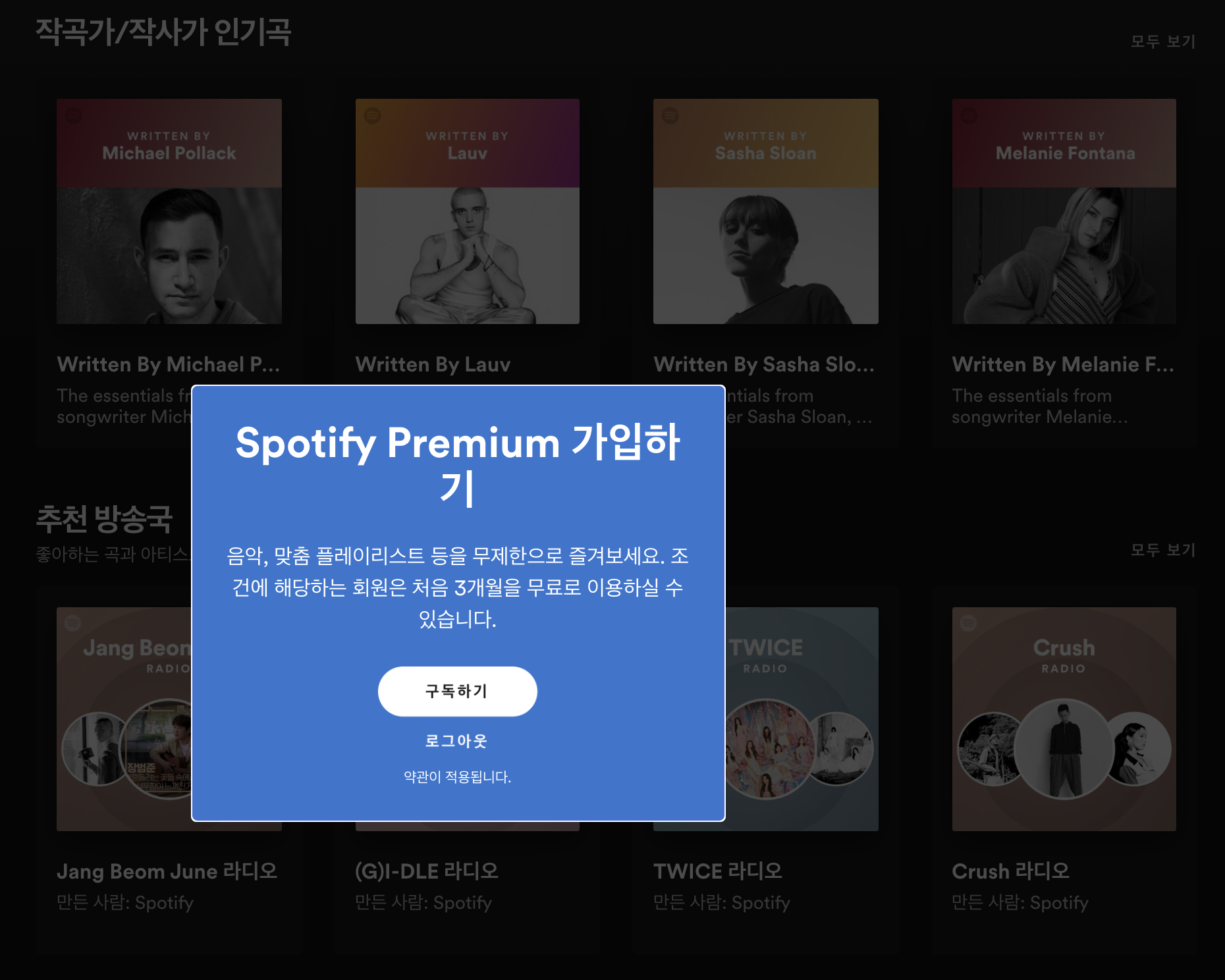 spotify가 한국에서도 서비스를 시작해서 나중에 한번 들어봐야지 했는데