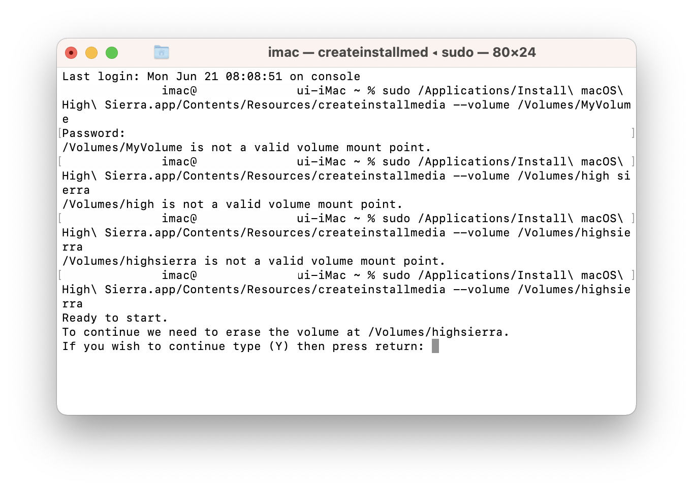 to continue we need to erase the volume at /Volumes/highsierra.