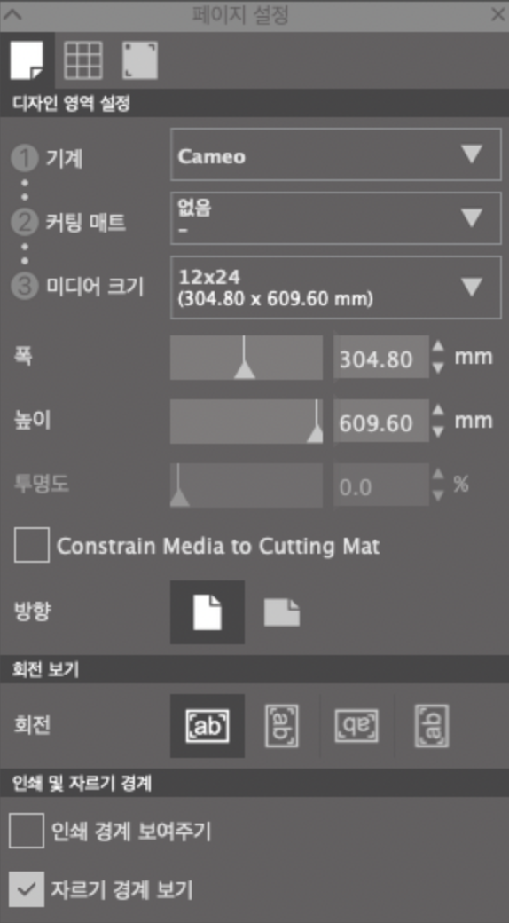 컷팅을 하는데 계속 12x12인치 사이즈로만 컷팅이 되는데