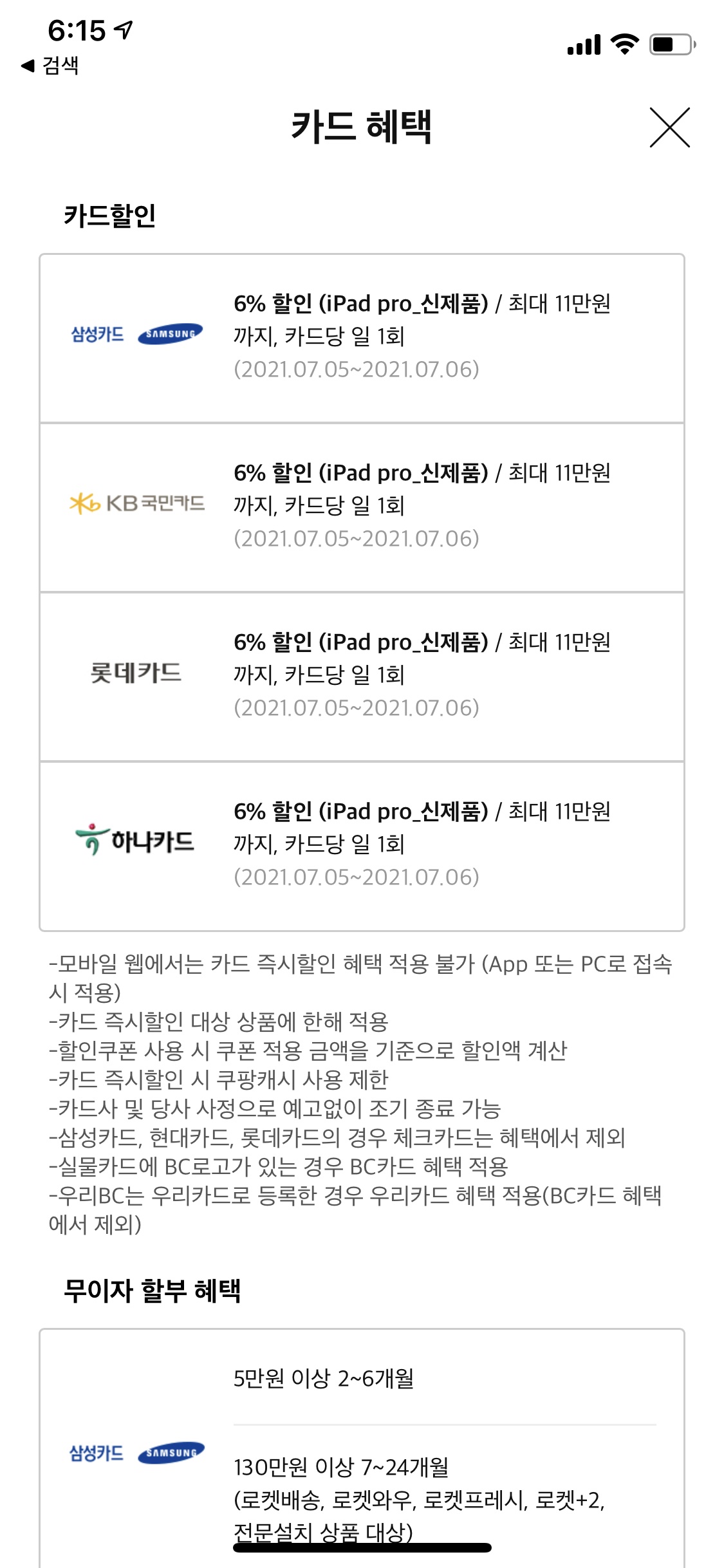원래 어제까지 롯데, 국민, 하나, 삼성 카드 최대 5% 즉시할인 하고 있었는데