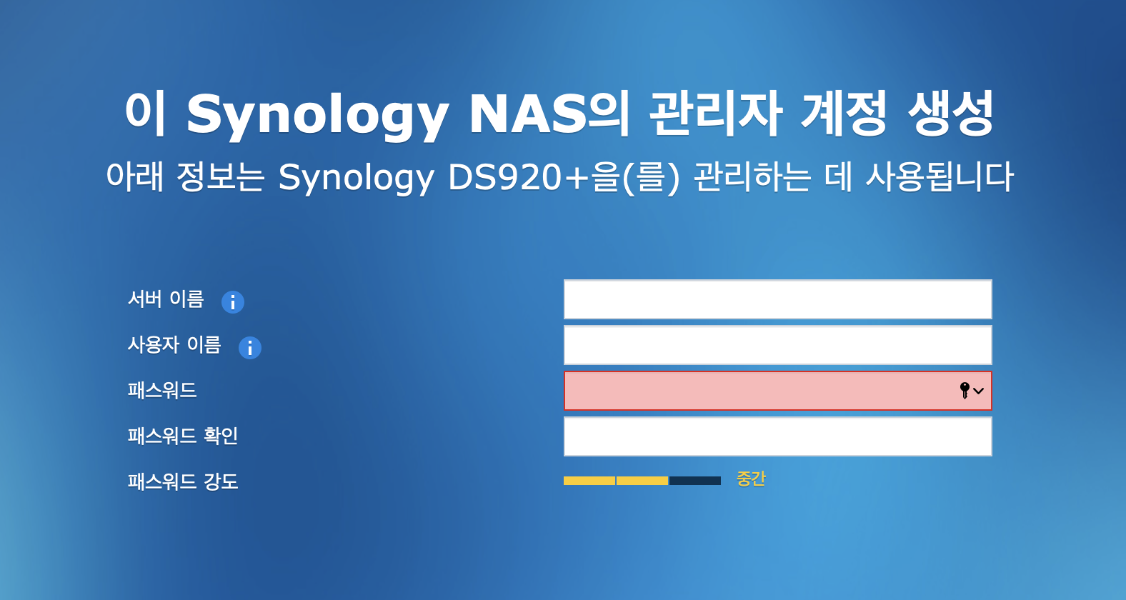 그리고 시놀로지 나스 DS920+ 설정이 시작된다.