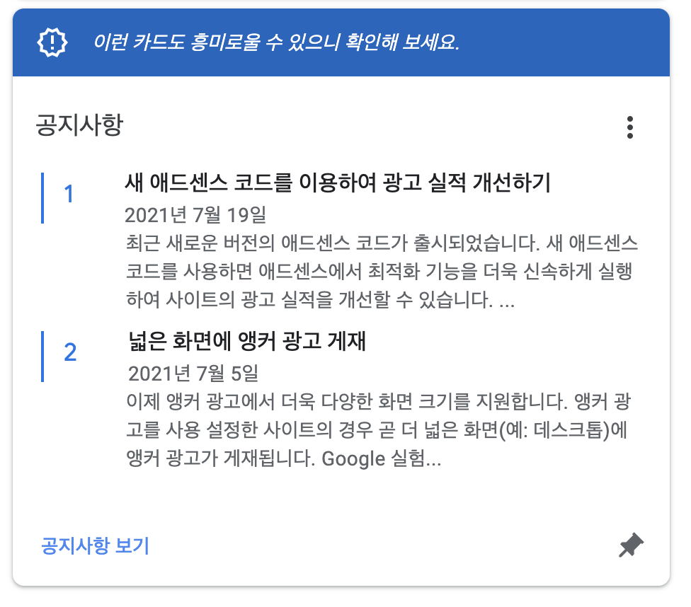 새 애드센스 코드를 이용하여 광고 실적 개선하기 안내가 있더라!