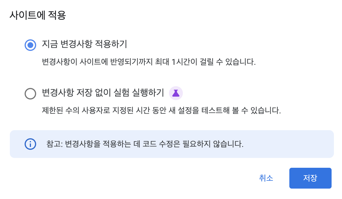 지금 적용할껀지 나오는데.. 그냥 저장 버튼을 눌러줬다.