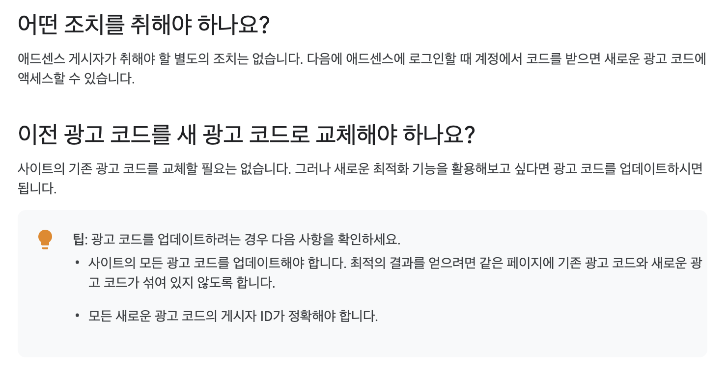 애드센스 게시자가 취해야 할 별도의 조치는 없다고 한다.