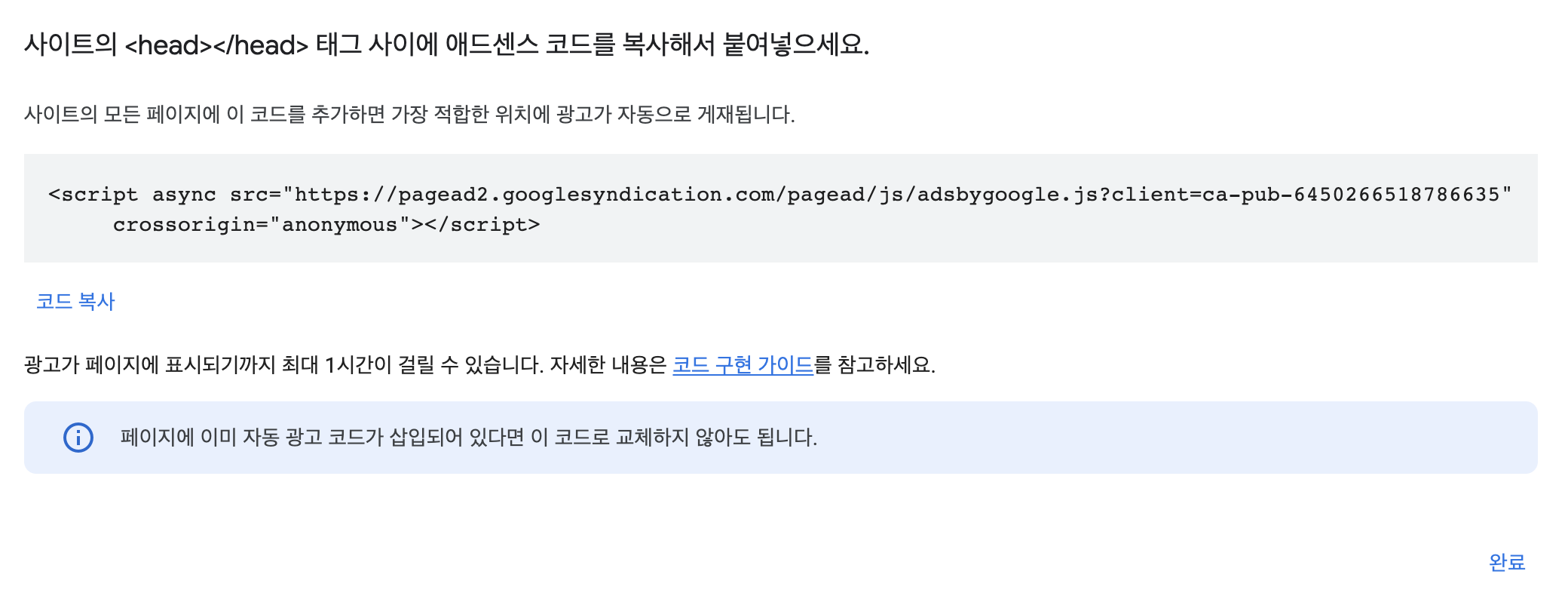 자동광고 코드를 복사해서 티스토리 <head>태그 사이에 추가할려고 봤는데