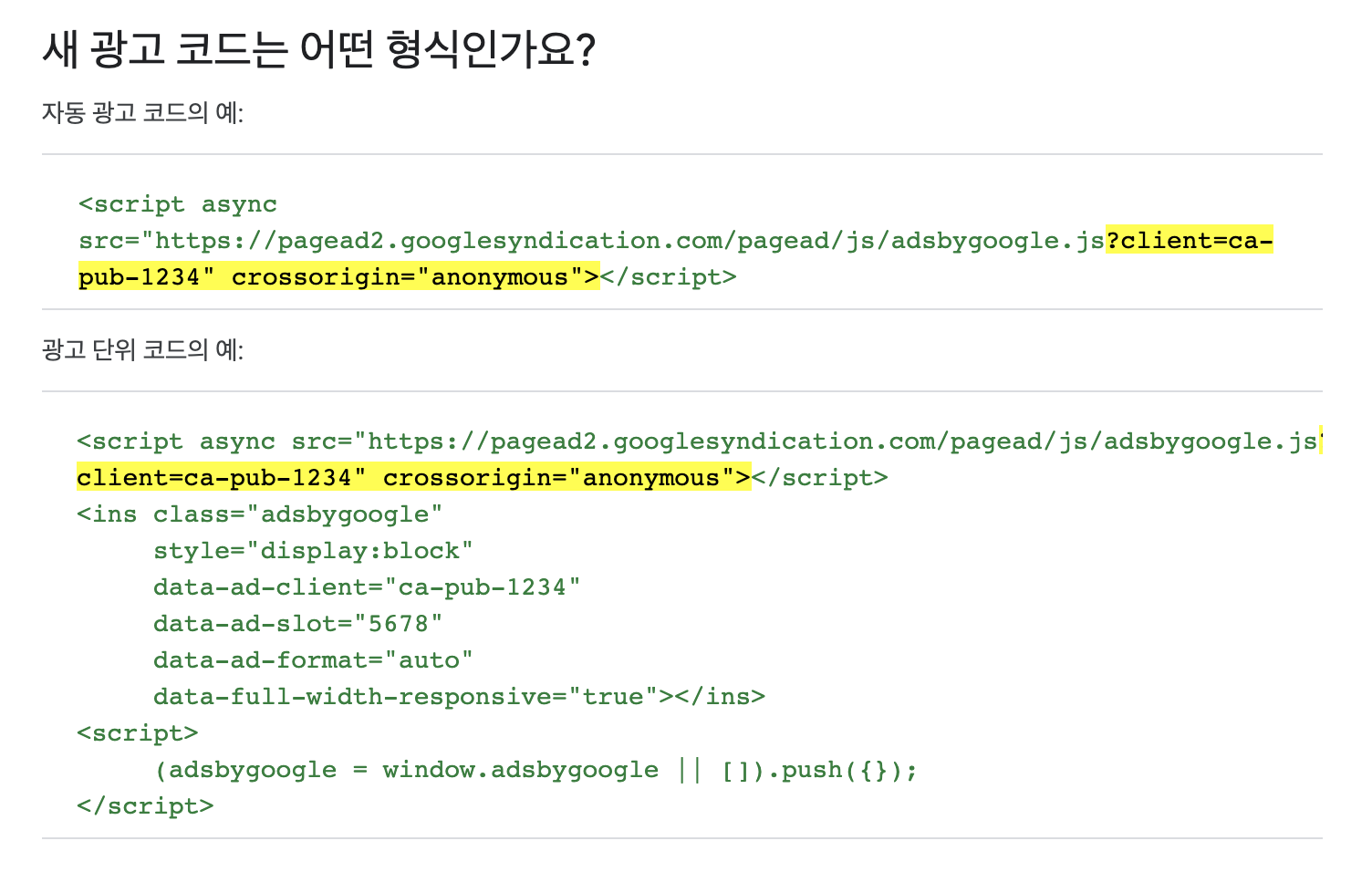 새 광고 코드는 이렇게 바꼈다고 한다.