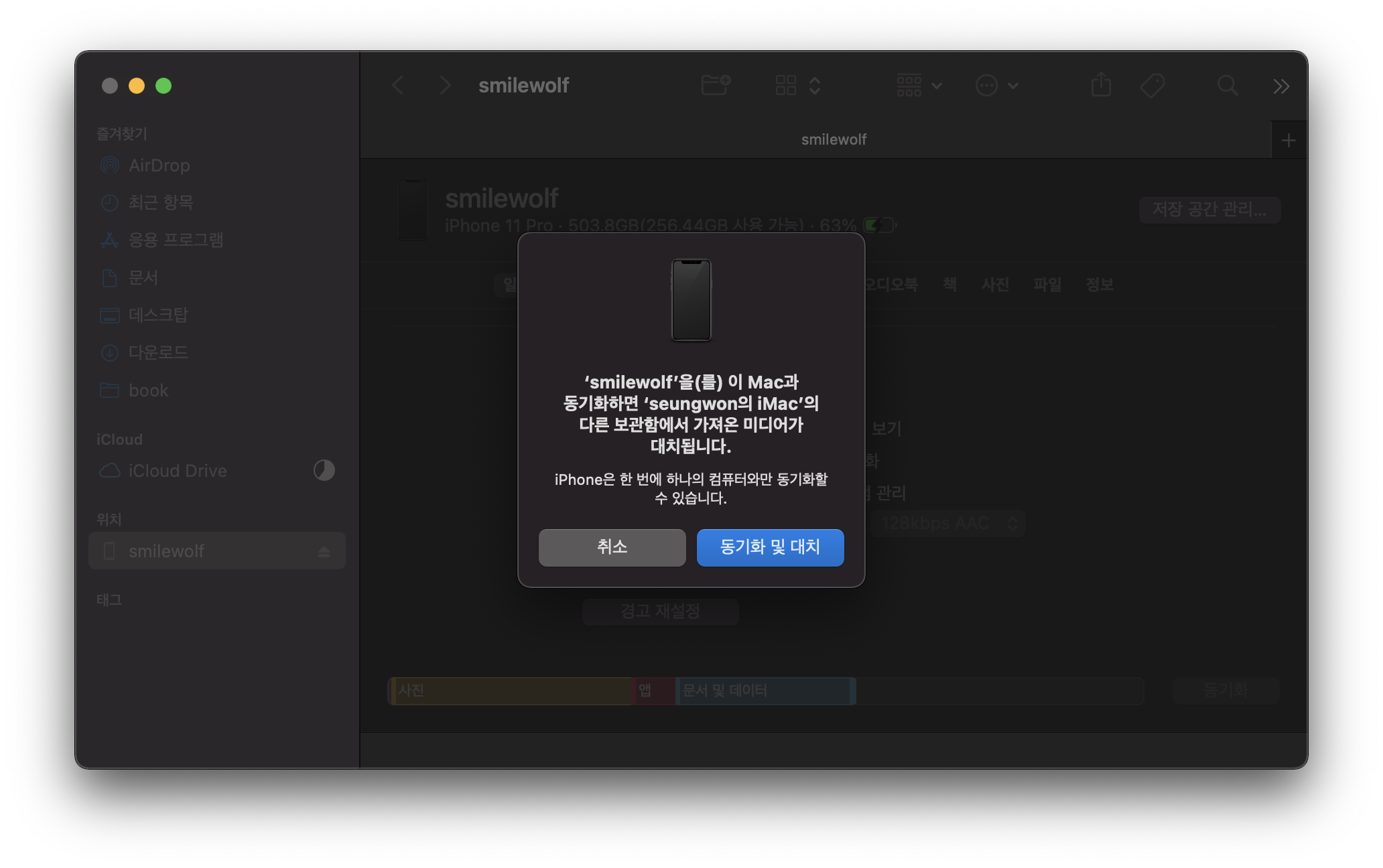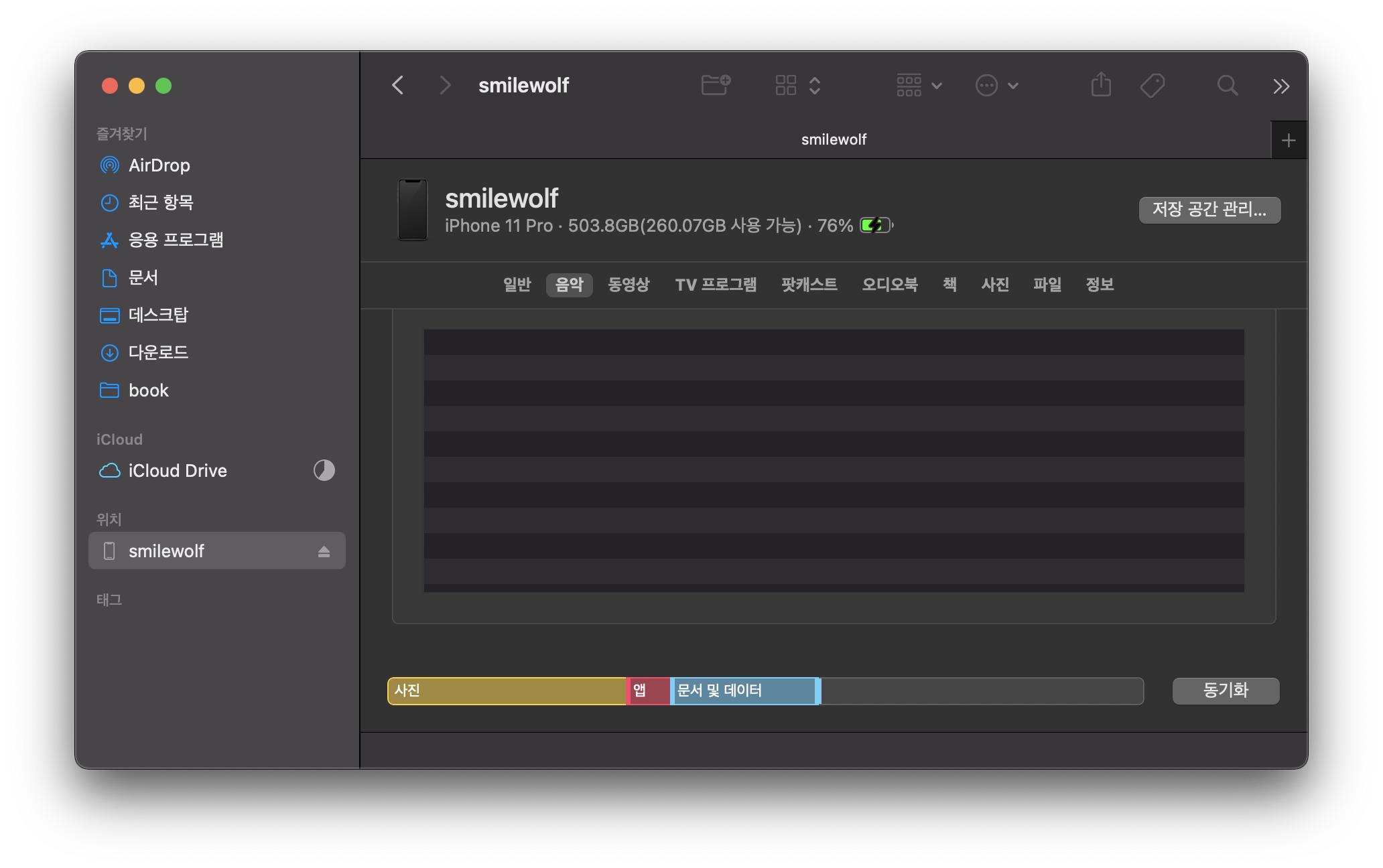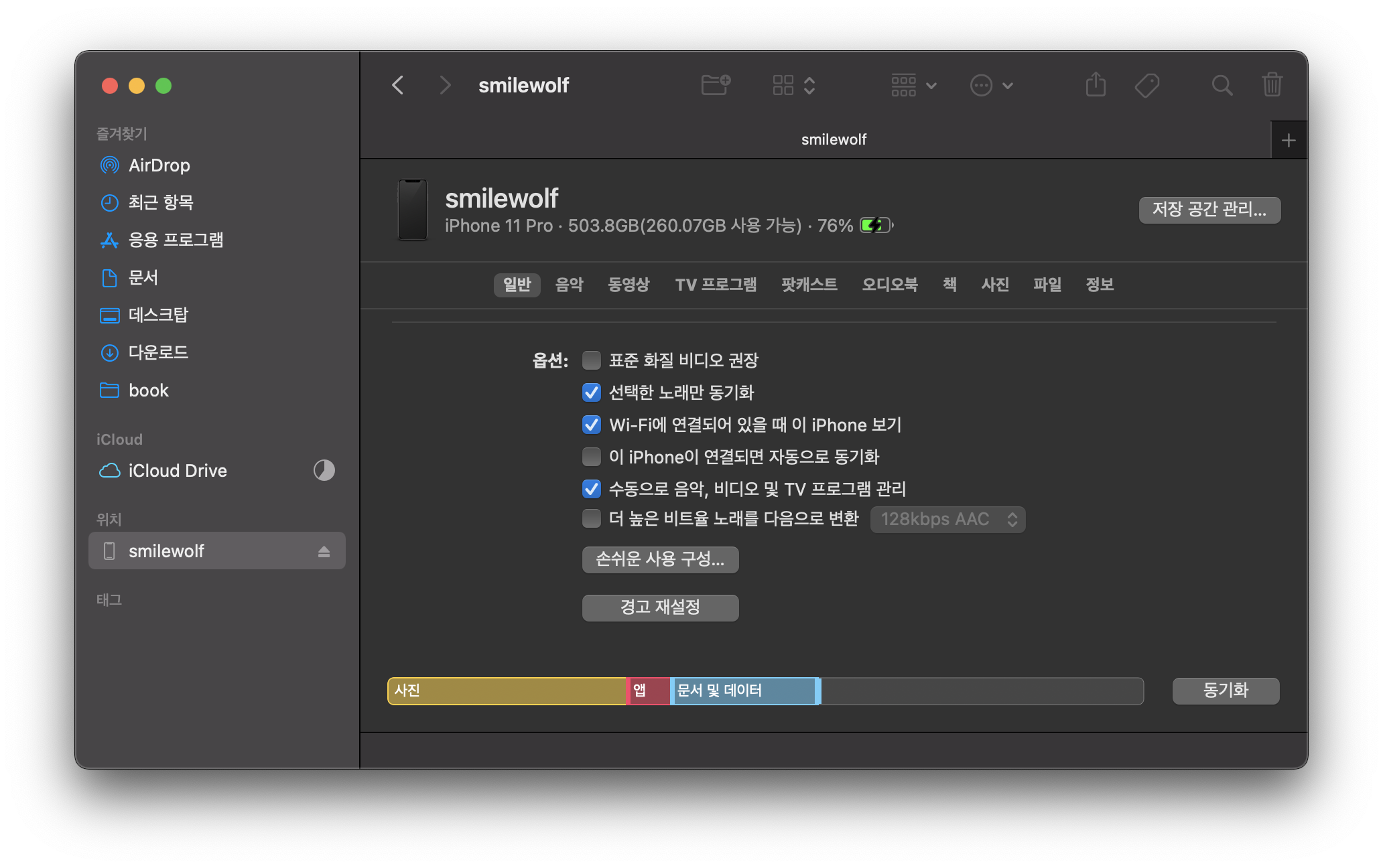 옛날에 무시무시 했던 아이튠즈 동기화는 맥에서 OS가 업데이트 되면서 이제 사라졌다.