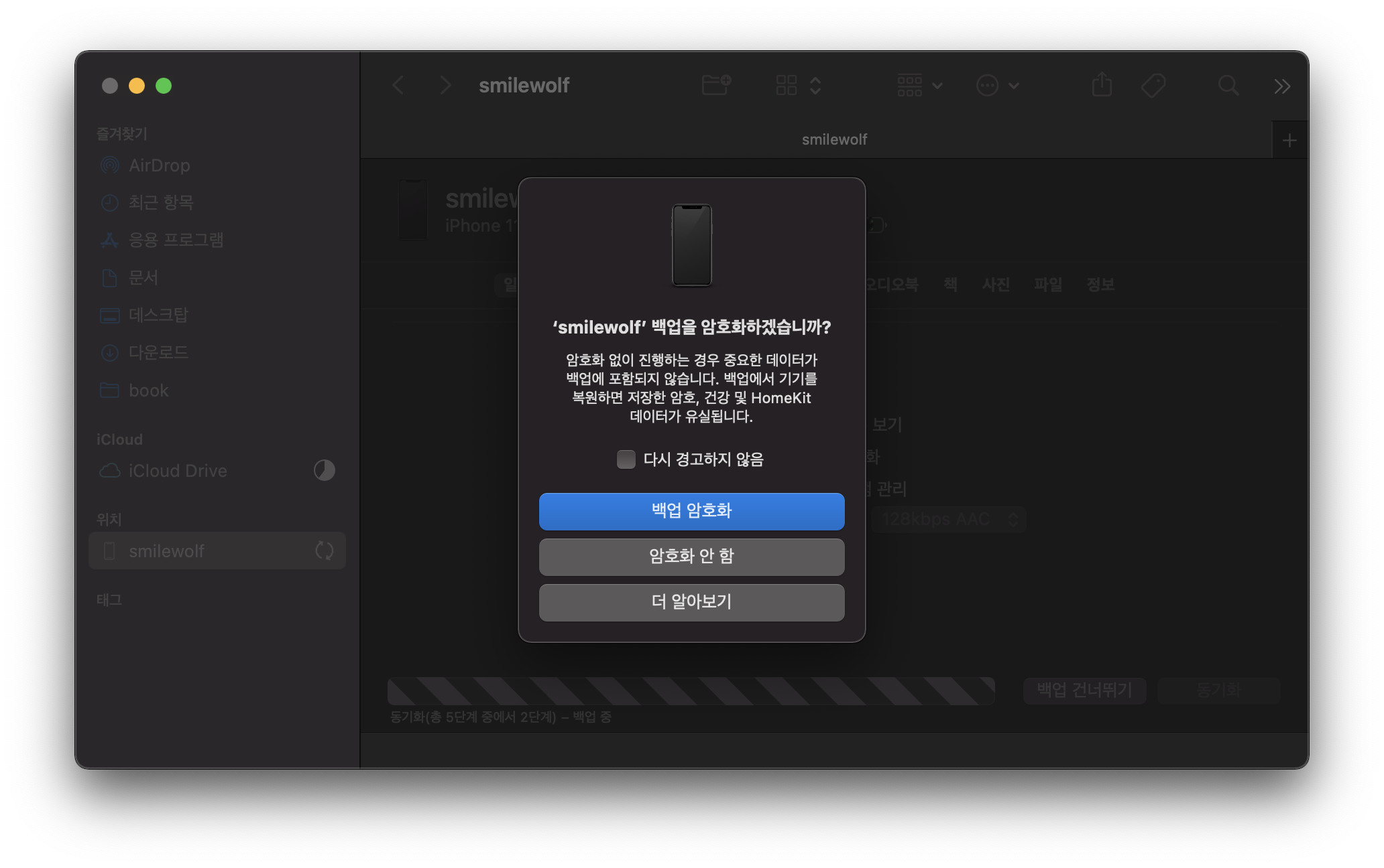 동기화가 싫지만 이제 다시 파인더를 열어보자.