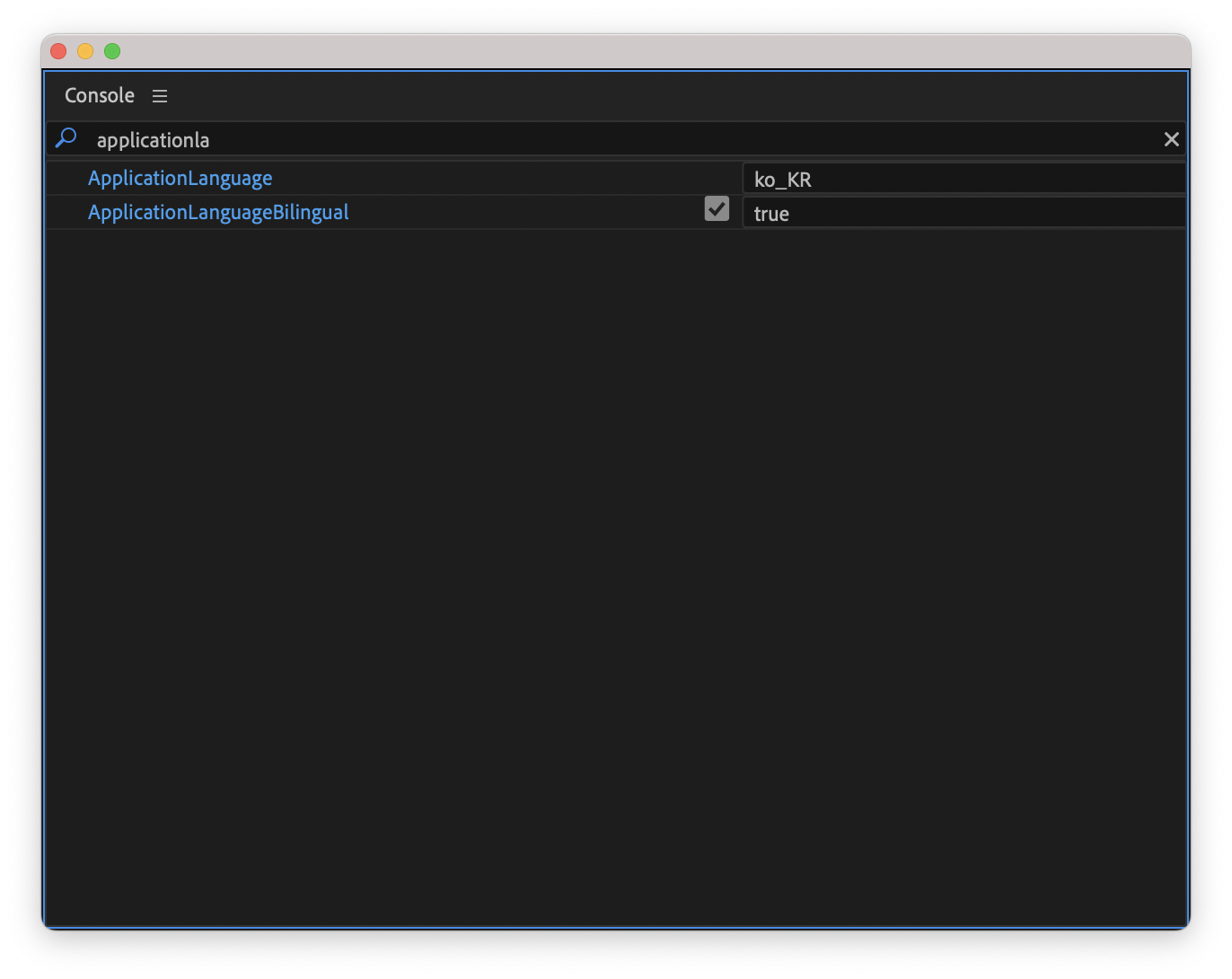 원래 프리미어를 영문으로 설치했다면 applicationLanguage 에 en_US로 표기가 되어 있다.