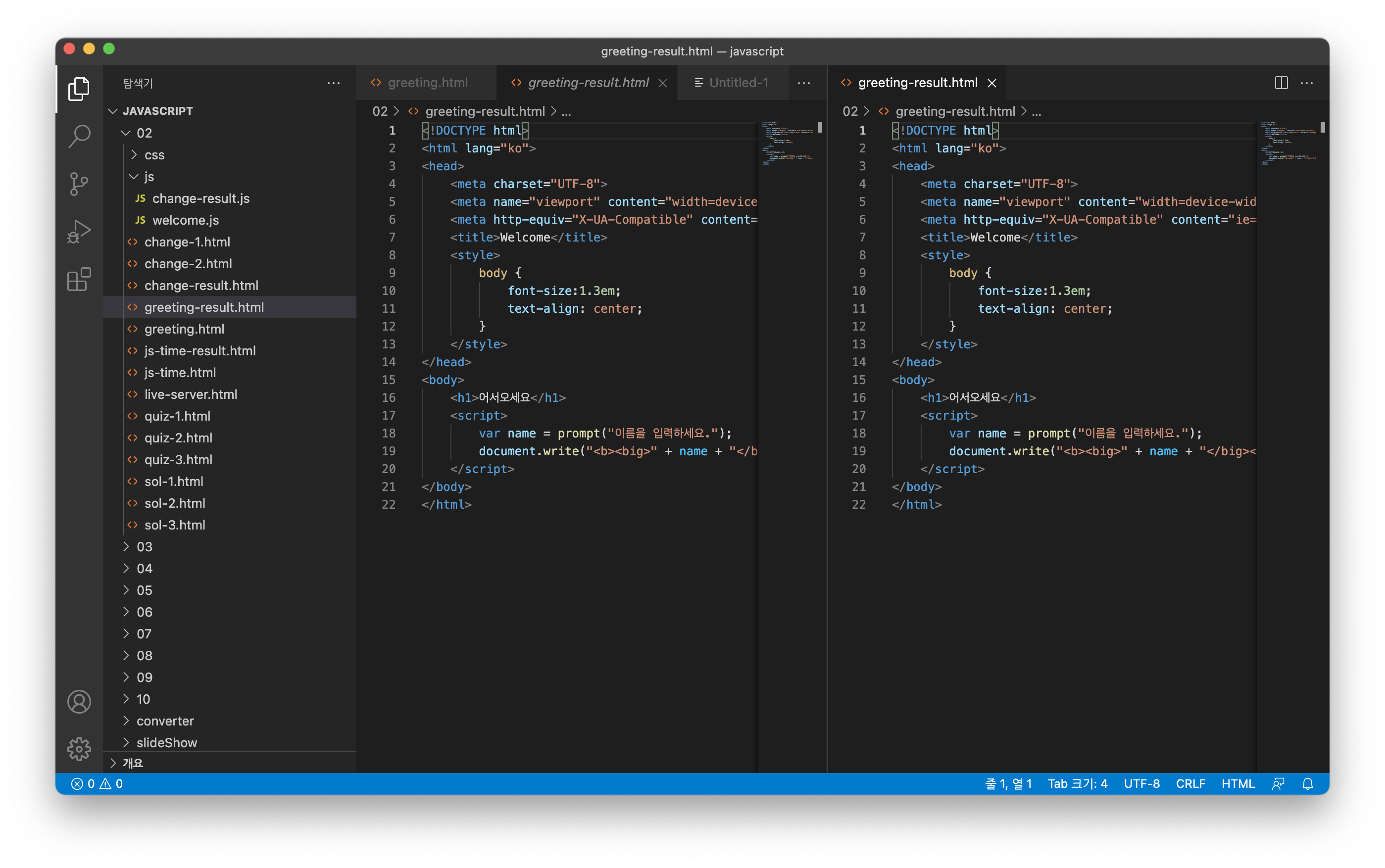 2개의 창을 나란히 놓고 볼 수 있다.