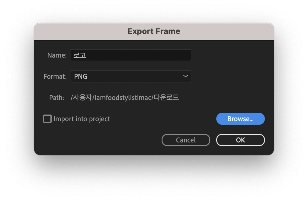 정지 이미지로 만들어서 내보내기 할 수 있다.