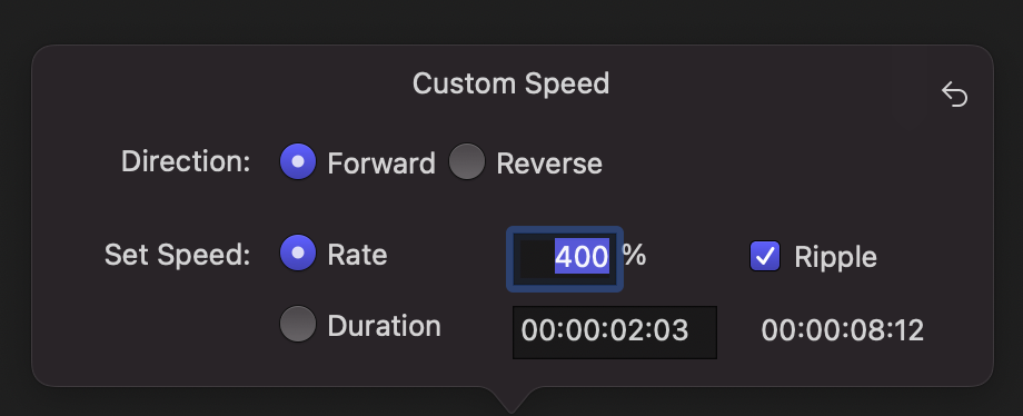 ripple을 체크하면 지정한 속도에 따라 영상의 길이가 자동으로 조절된다.