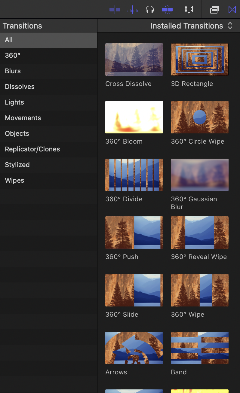 파이널컷 우측 중간부분에 있는 나비 넥타이 모양의 아이콘을 클릭하면