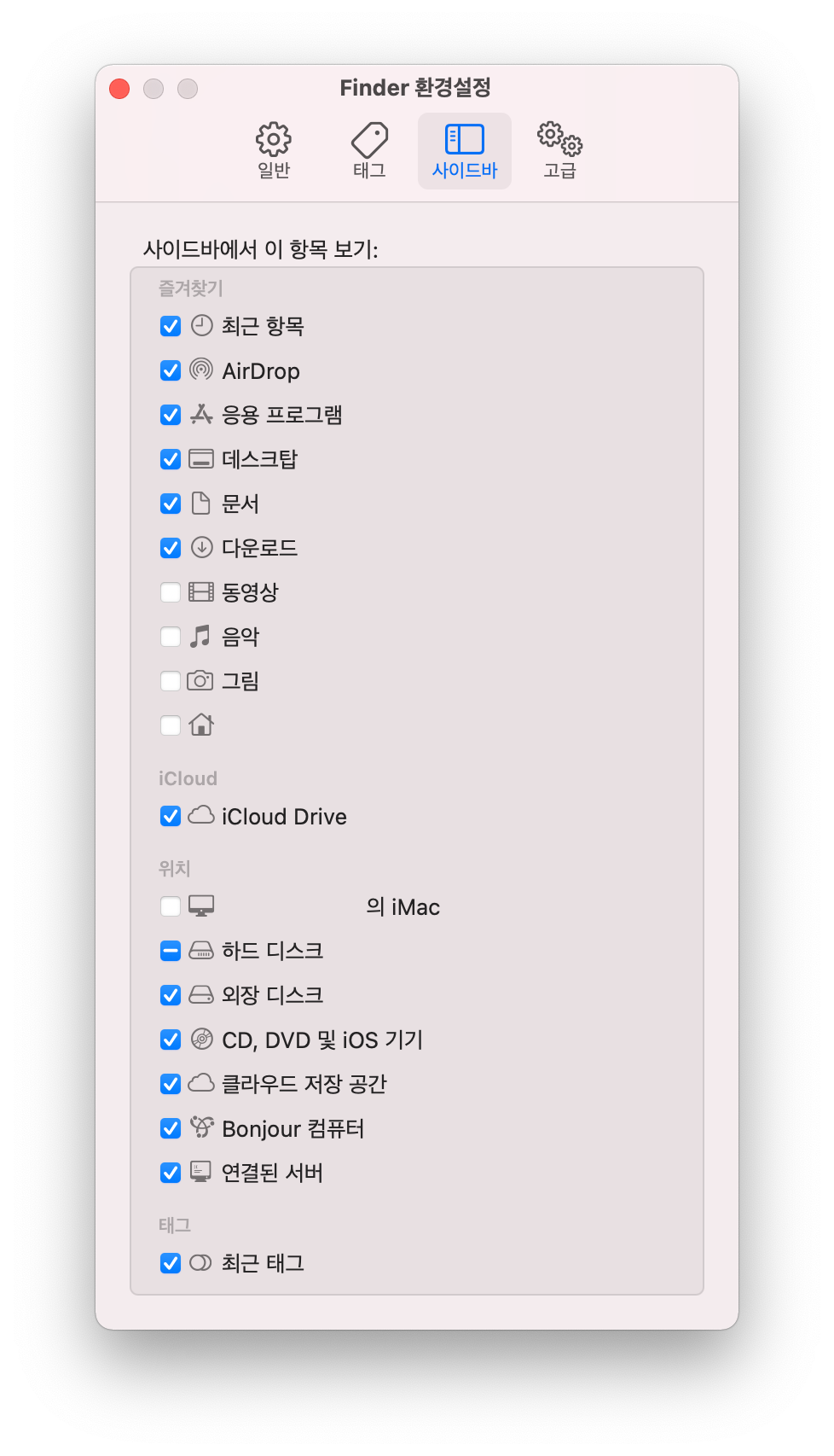 그리고 사이드바에 즐겨찾기 할 수 있는 폴더를 그냥 끌어다 놓을 수 있는데