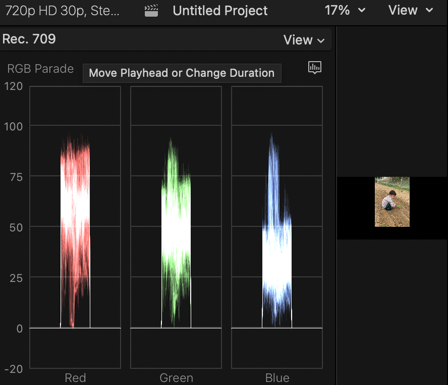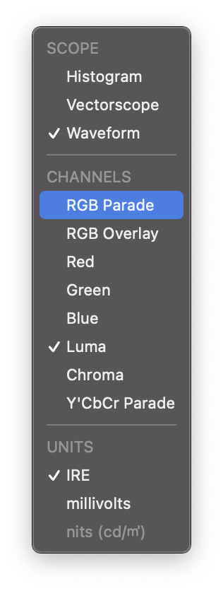 채널을 RGB Parade로 바꾼다.