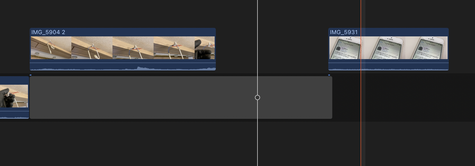 gap을 삽입하면 이렇게 회색 클립이 생겨나고 그 위에 영상을 배치하게 되면 전체 길이를 유지한채 영상을 편집할 수 있게 된다.