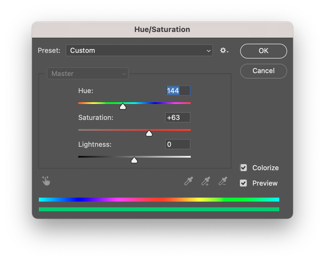 colorize에 체크를 하면 이니지가 단색으로 변경이 된다.