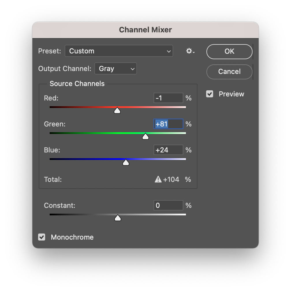 여러가지 방법으로 흑백이미지를 만들 수 있지만 여기선 좀더 여러가지 값을 조절해서
