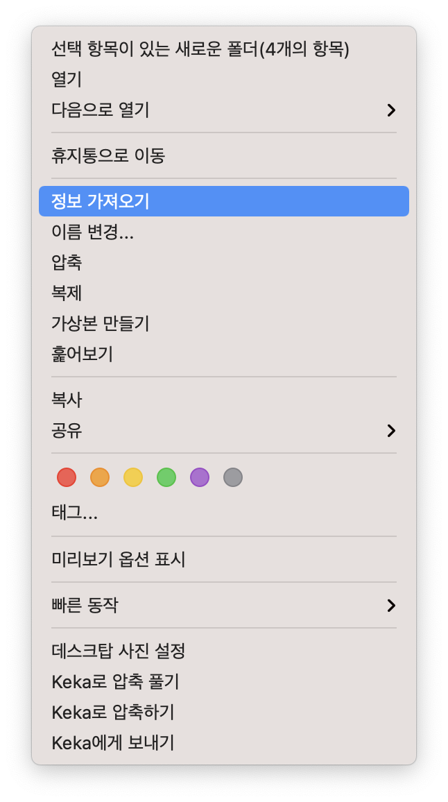 그리고 cmd+i 로 파일 상세정보를 표시하면