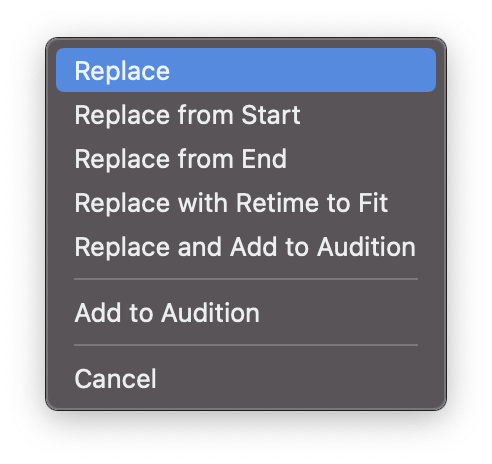 영상을 타임라인으로 가져오는 옵션에는 여러가지가 있다.