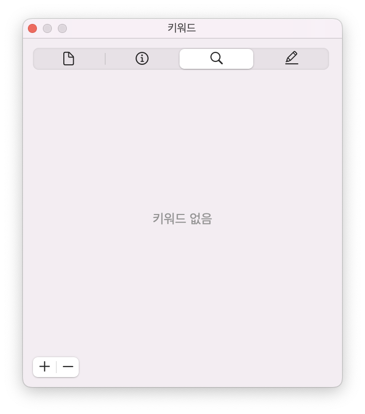 키워드 탭을 클릭 후 왼쪽 하단의 플러스 버튼을 눌러 태그를 추가한다.