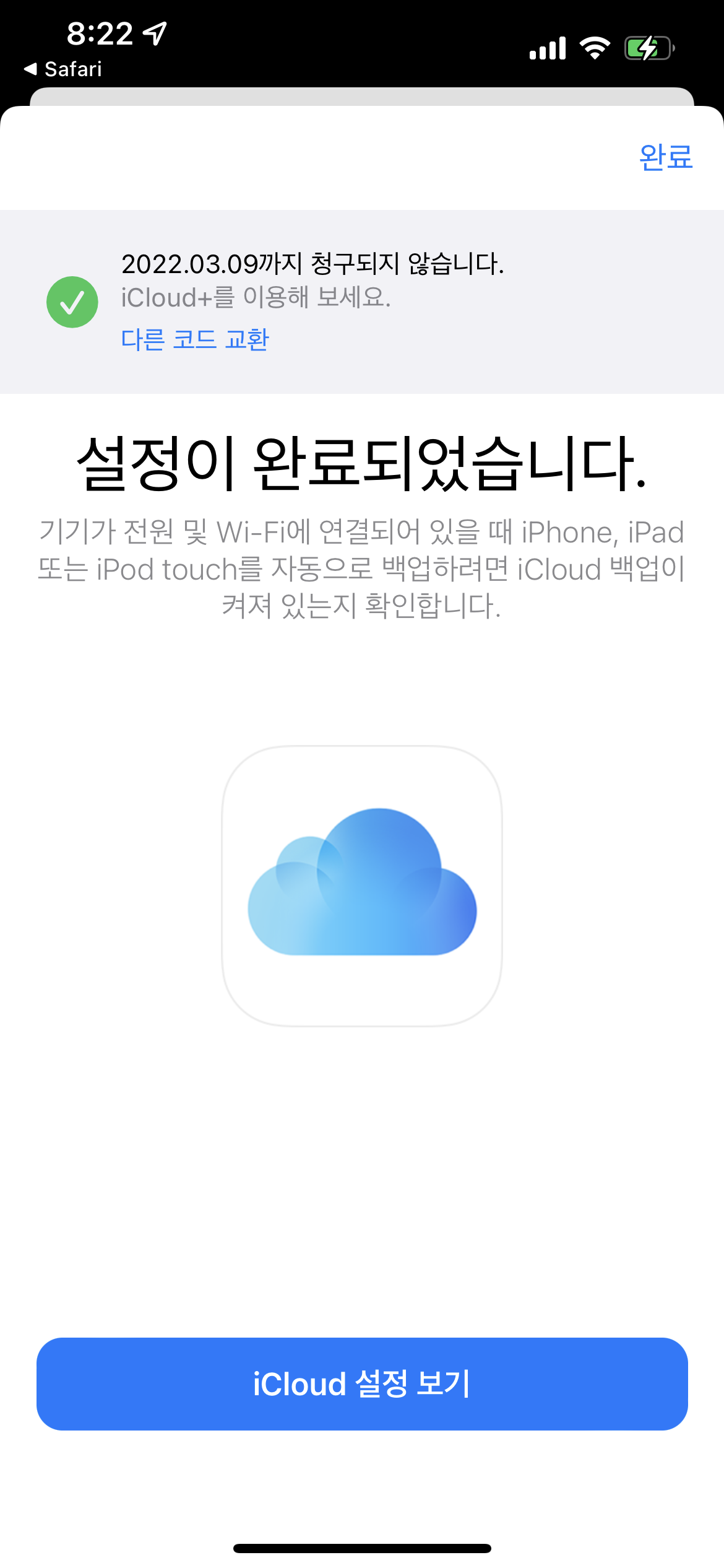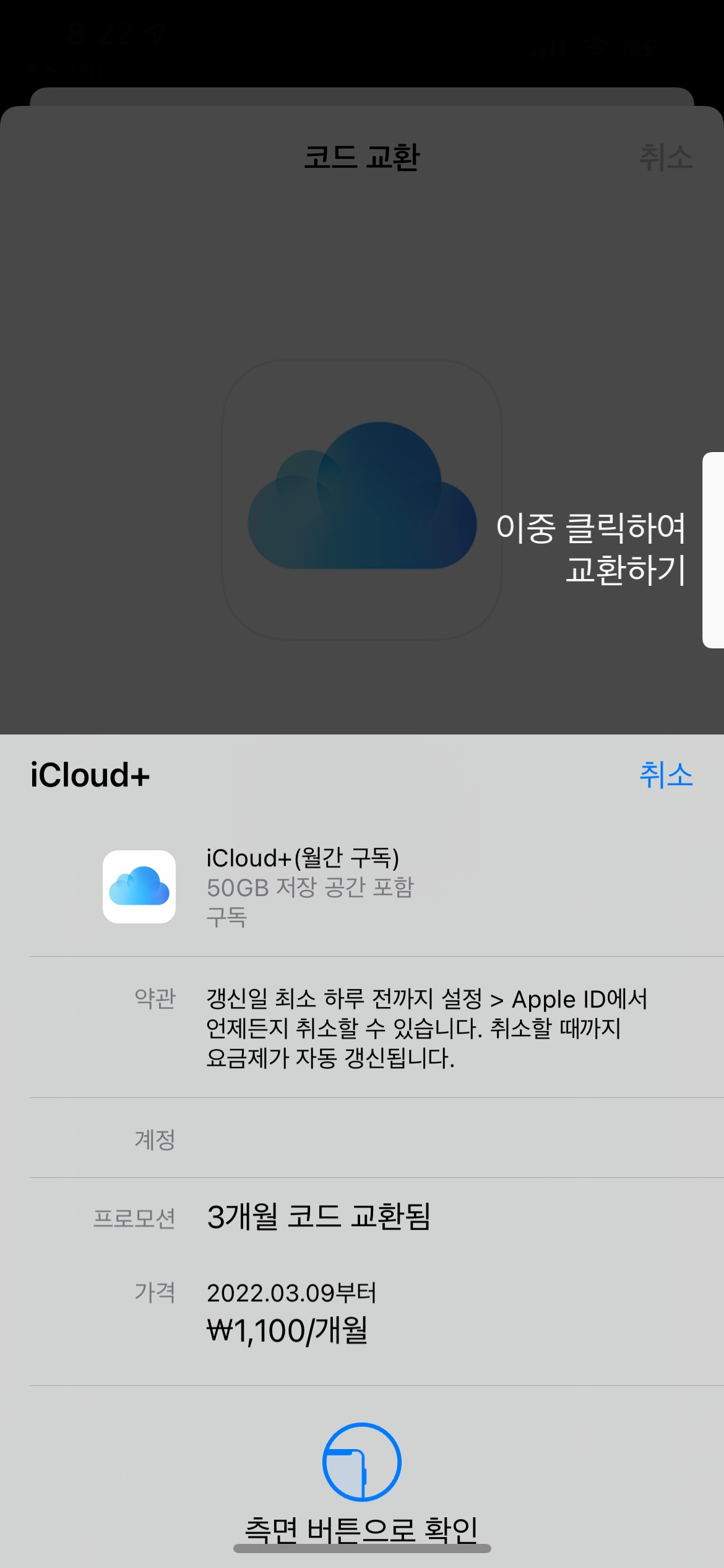 11번가에서 구매해서 3개월 무료 아이클라우드 50G 리딤코드를 받았다.