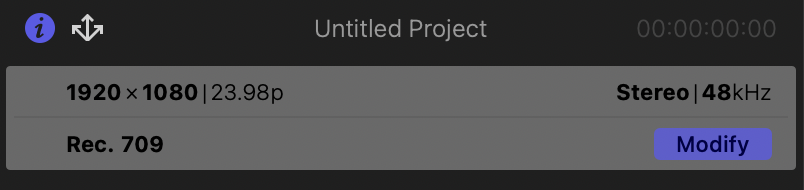 우측에 있는 인스펙터 패널에서 modify를 클릭하면 프로젝트 속성을 수정할 수 있다.