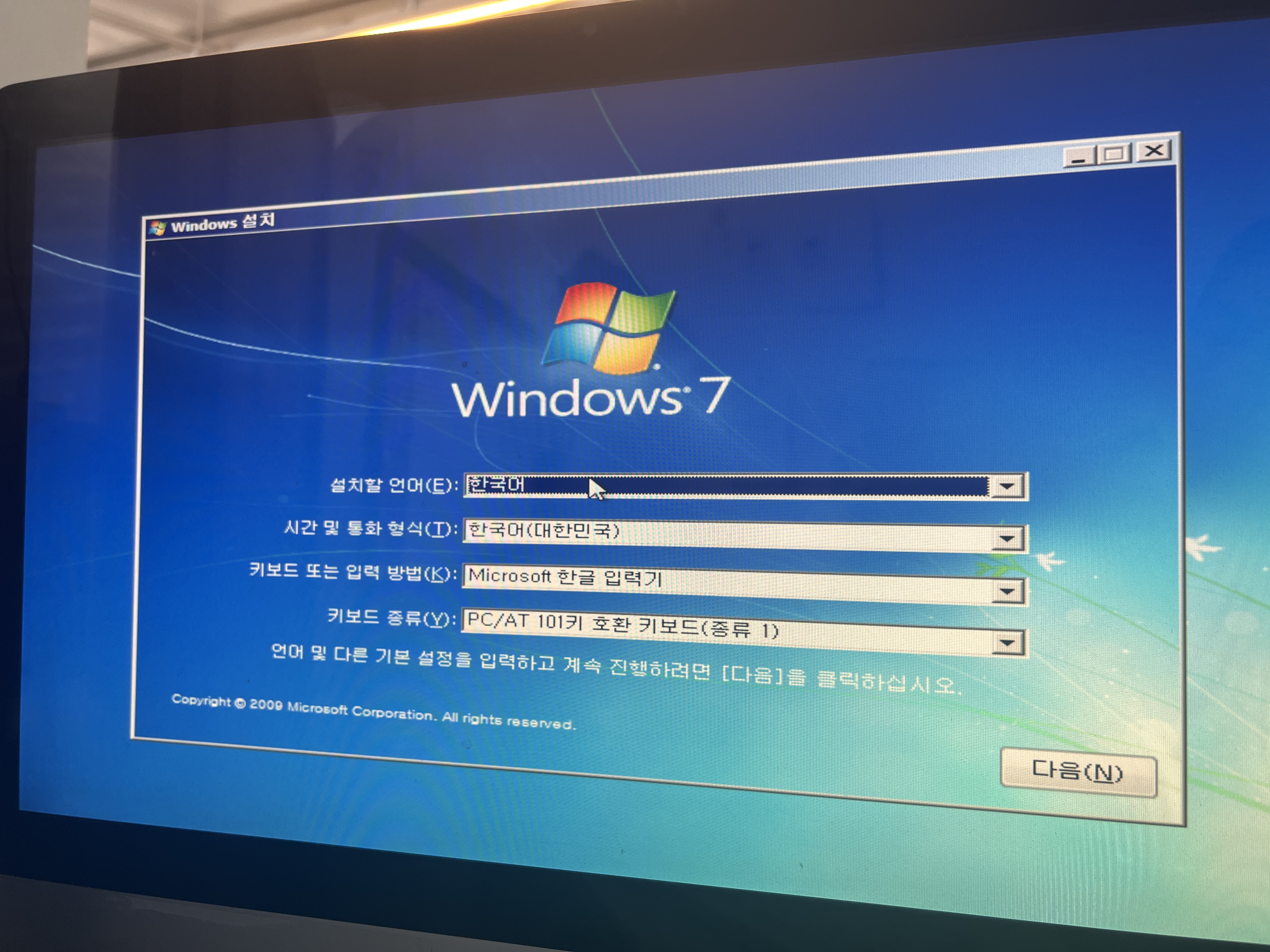 윈도우7밖에 지원하지 않는 옛날 프로그램때문에 어쩔 수 없이 윈도우7설치.