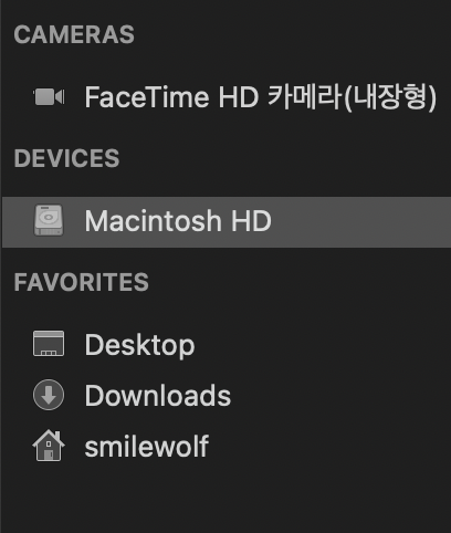 그리고 Favorite를 클릭하면 좌측 사이드바에 즐겨찾기 폴더가 추가된다.