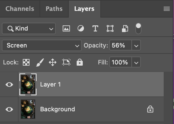 이처럼 레이어를 하나 복사해서 레이어 모드를 Screen으로 변경 후 적용값을 조정해서 사용하는 방법도 있다.