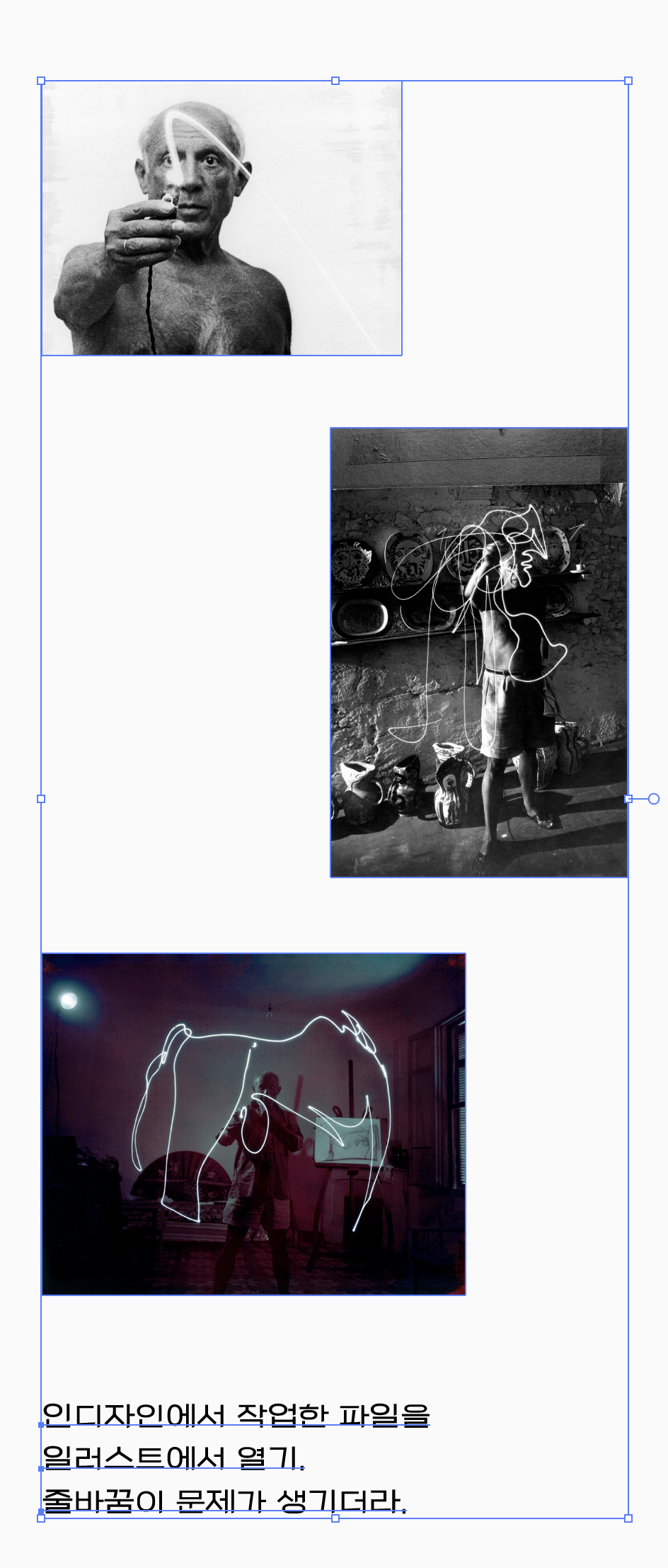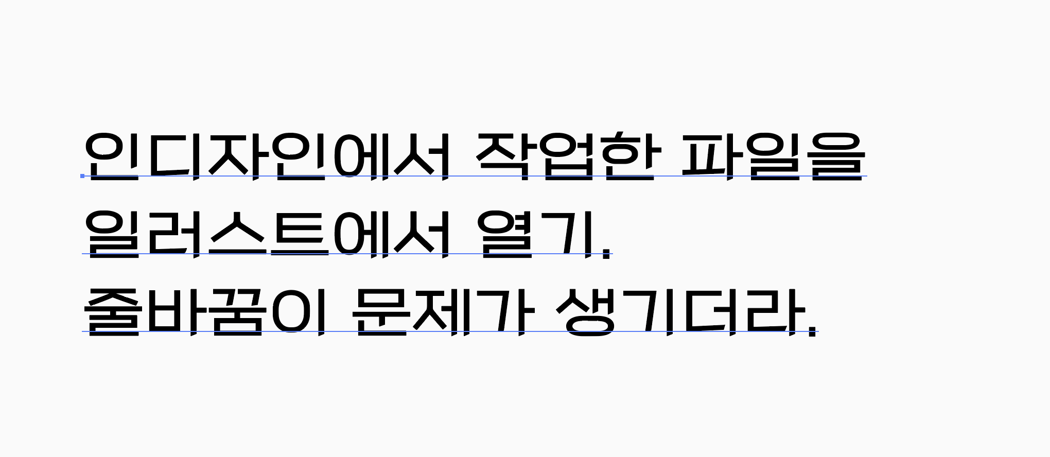 그런데 한가지 문제는 인디자인에서 작성한 문자가 줄바꿈이 되면