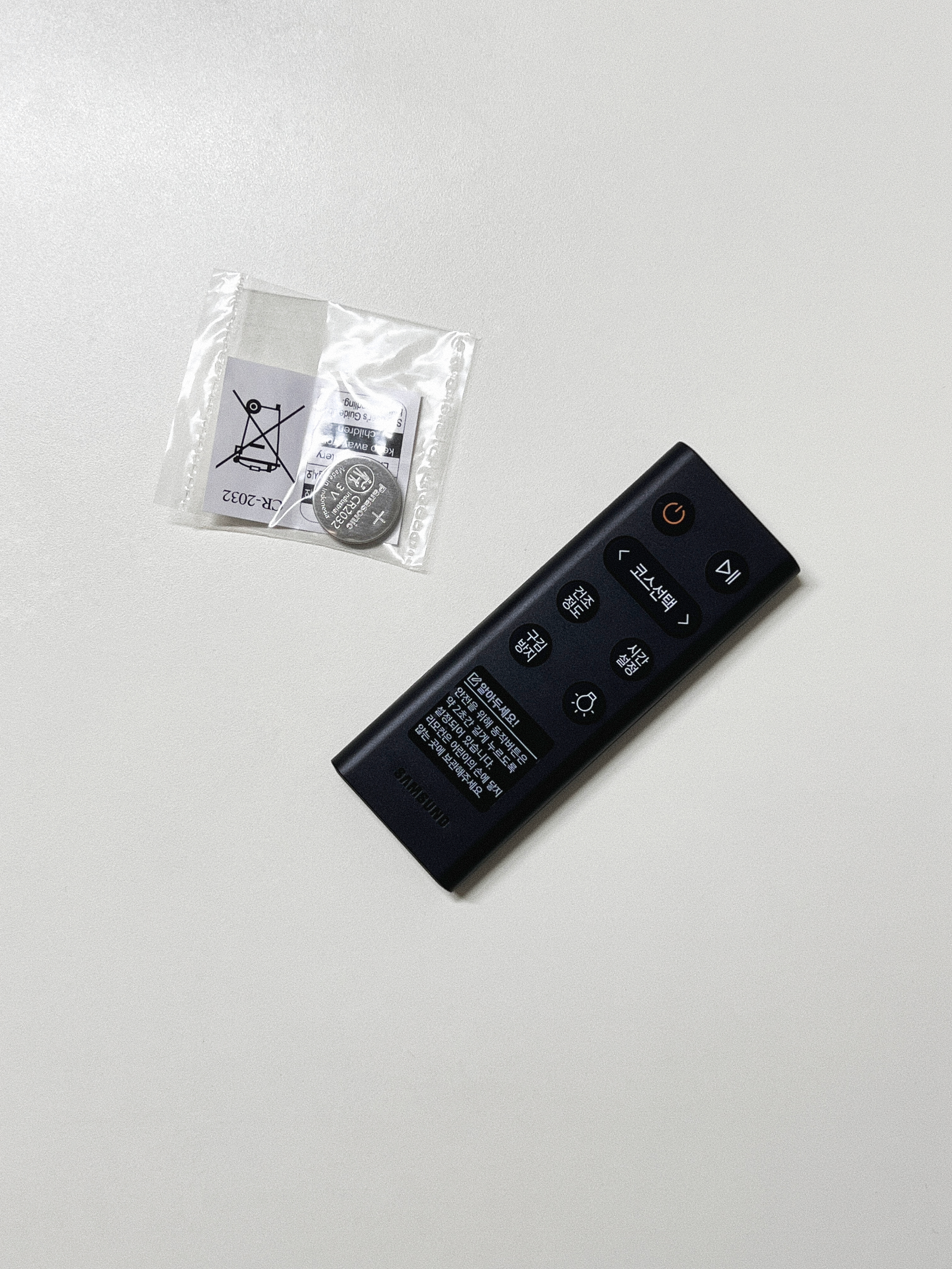 설명서와 리모컨, 그리고 알 수 없는 플라스틱. (저건 사용방법을 자세히 찾아보진 않았다.)