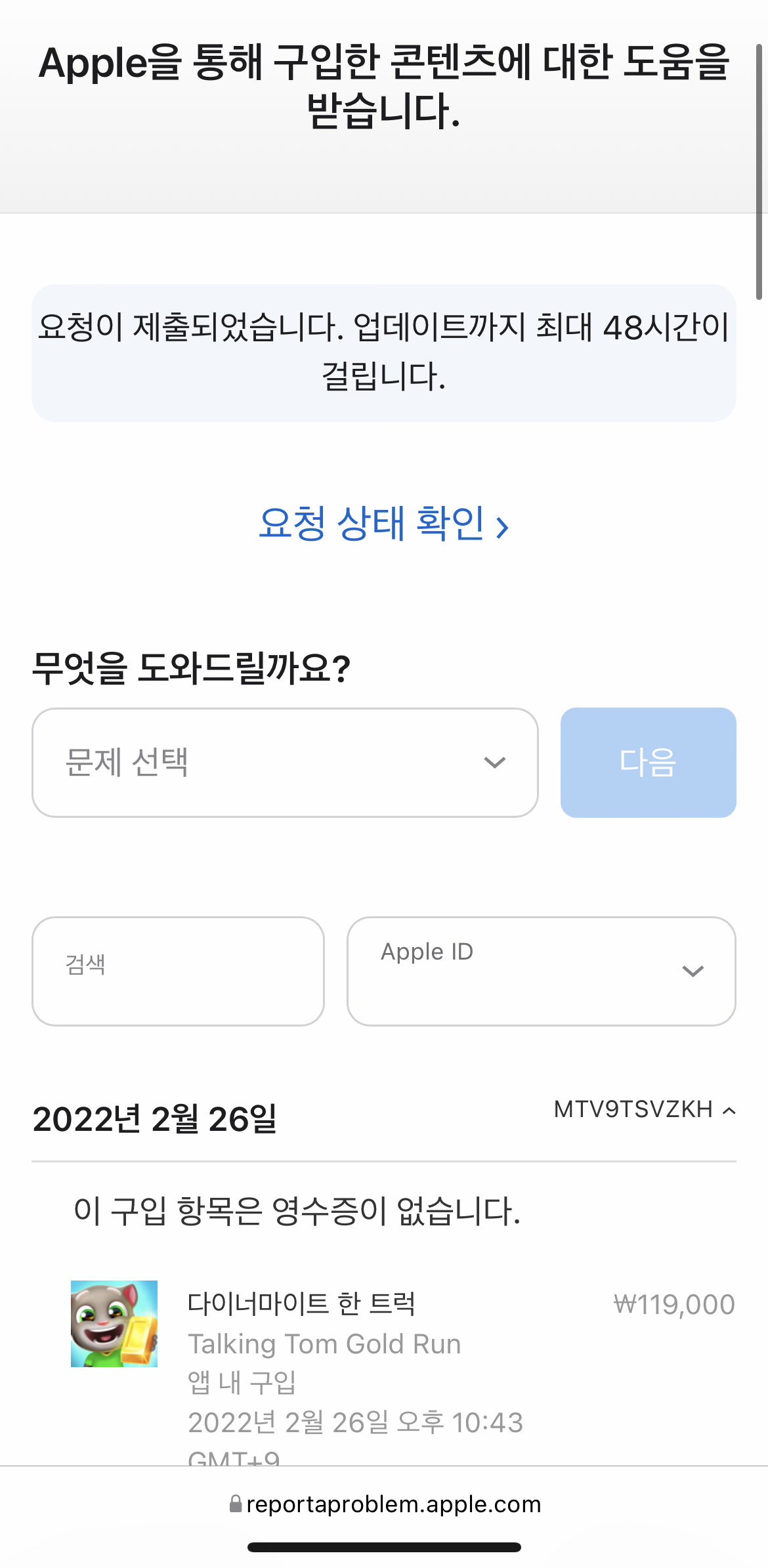 요청이 제출되었습니다. 업데이트까지 최대 48시간이 걸립니다.