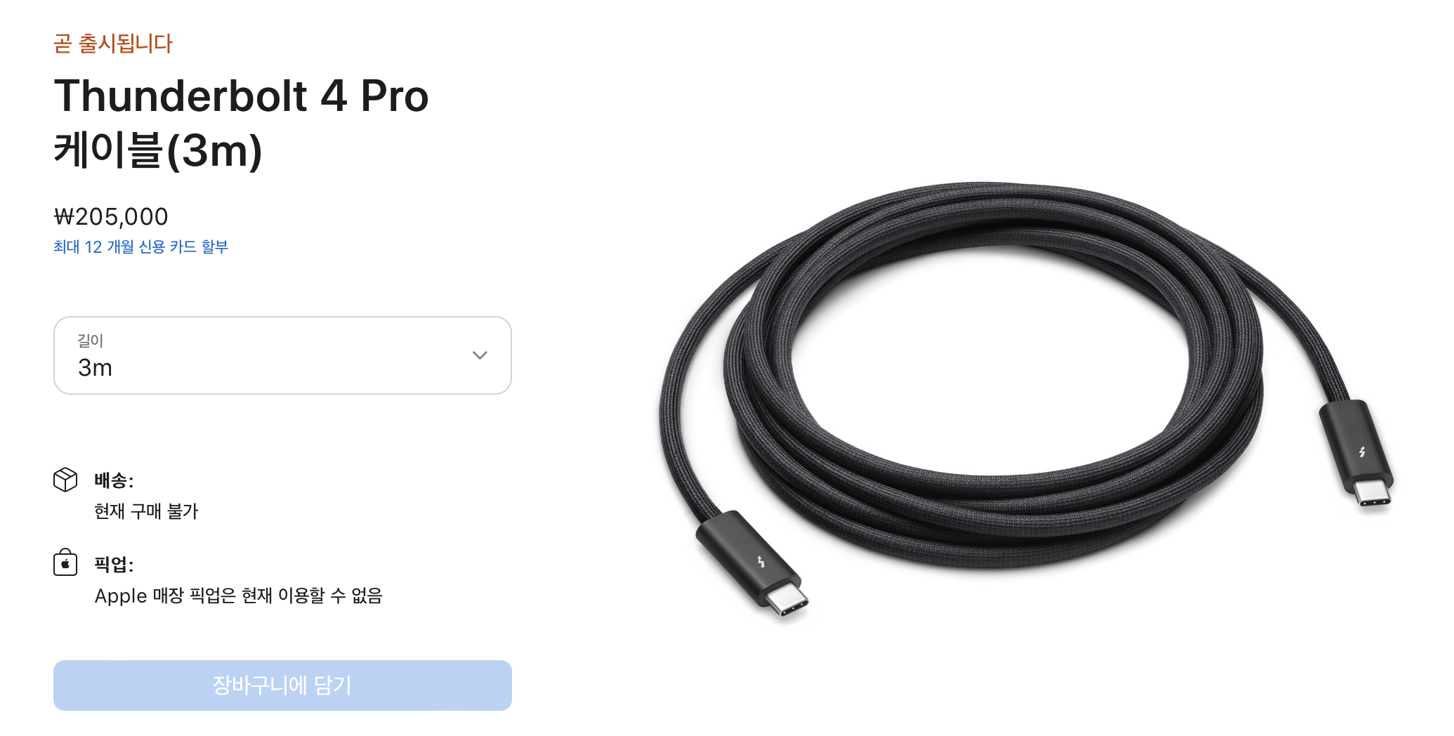 (애플에서는 3m 길이의 썬더볼트 케이블을 205,000원에 판매중이다!!!)