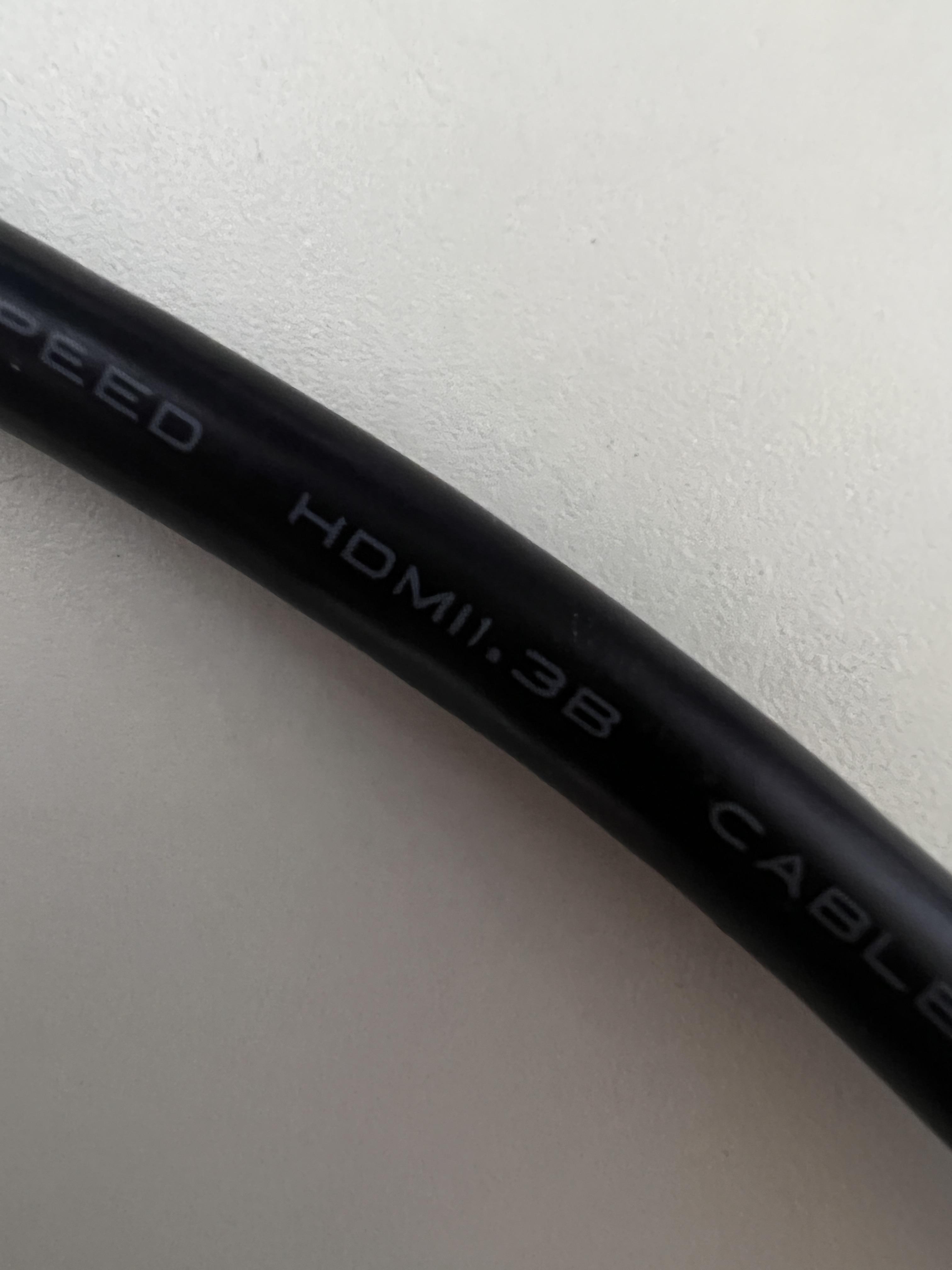 사진처럼 HDMI 케이블을 잘 살펴보면 영어로 프린트 되어있는 문구를 확인할 수 있다.