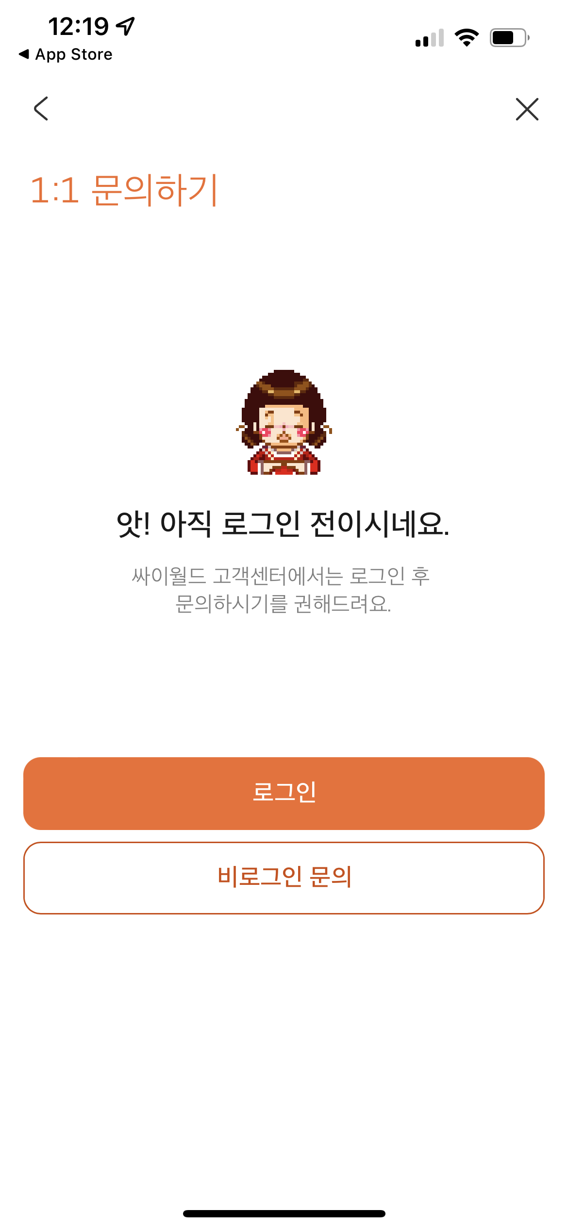싸이월드 고객센터에서는 로그인 후 문의하시기를 권해드려요.