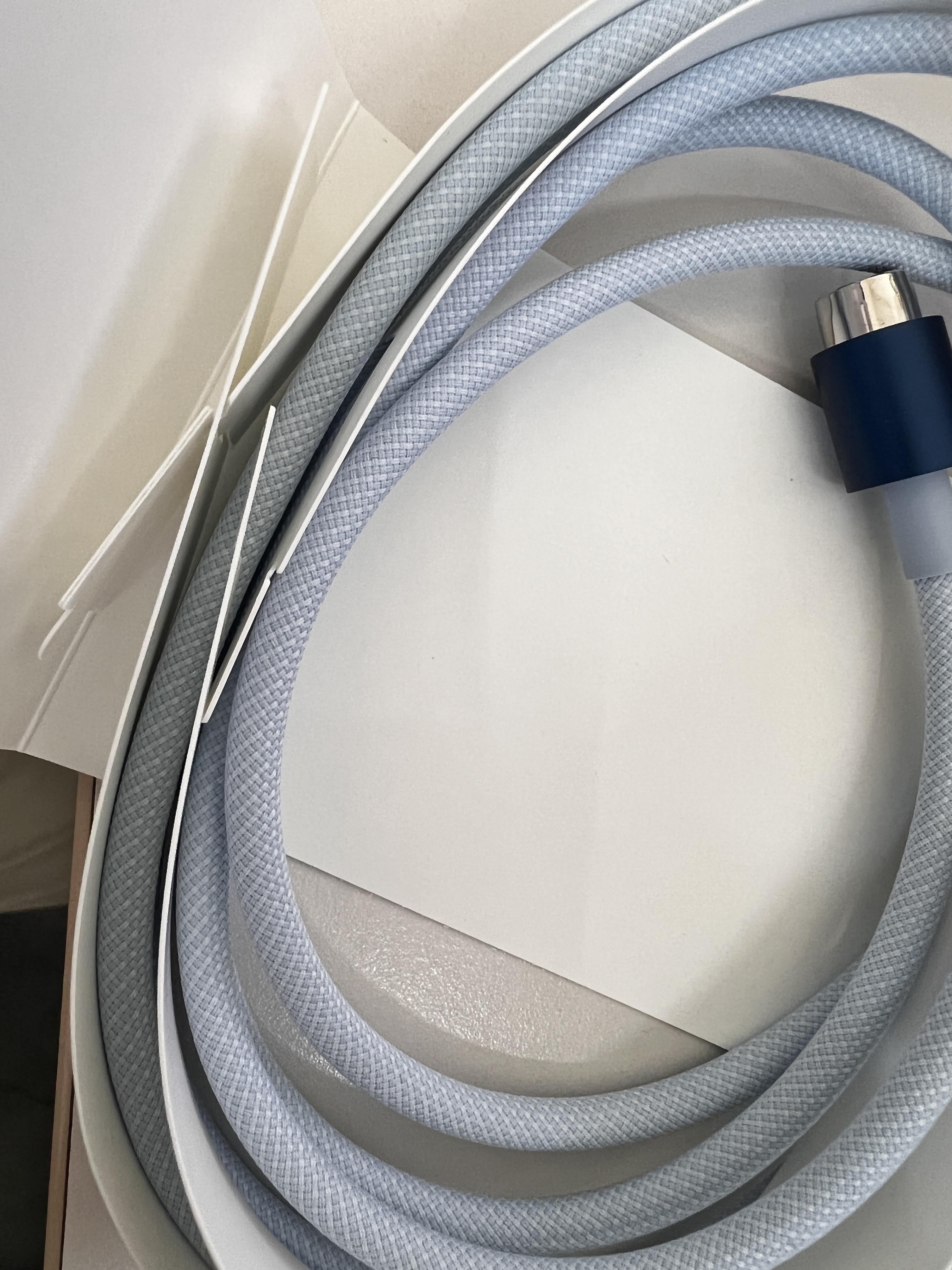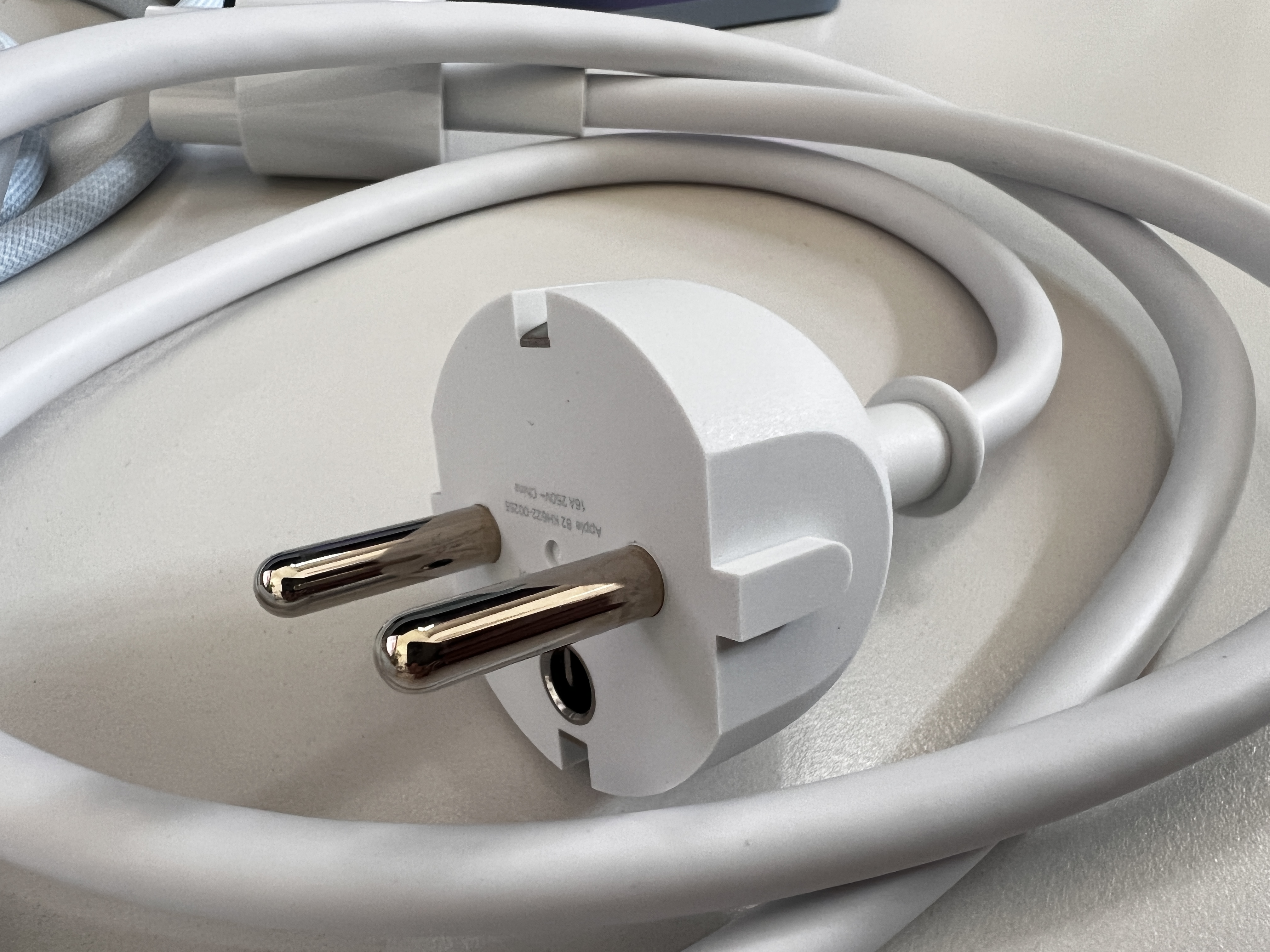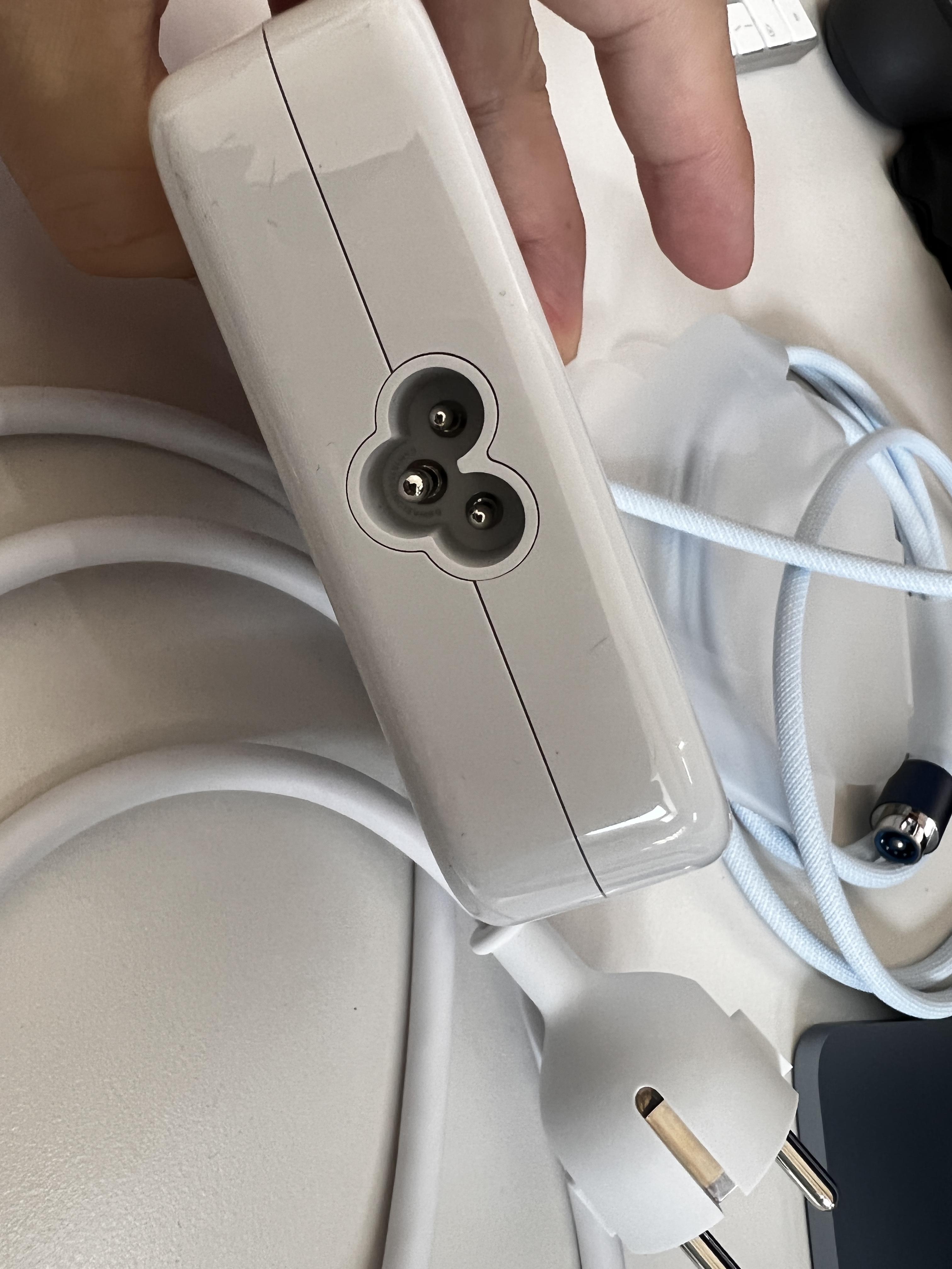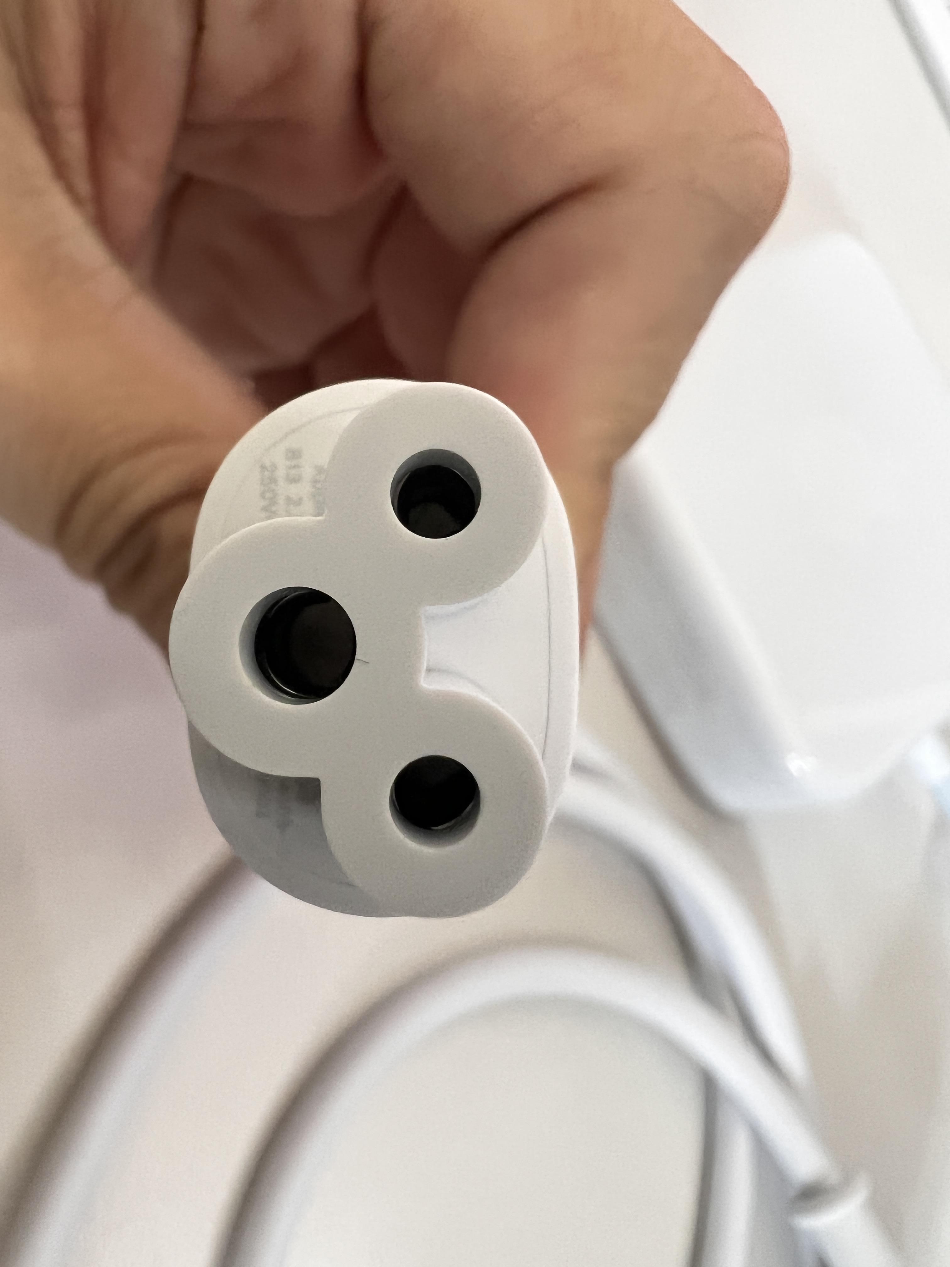 아이맥전원 케이블에는 기존 아이맥과는 다르게 노트북 충전기의 형태로 디자인되었다.