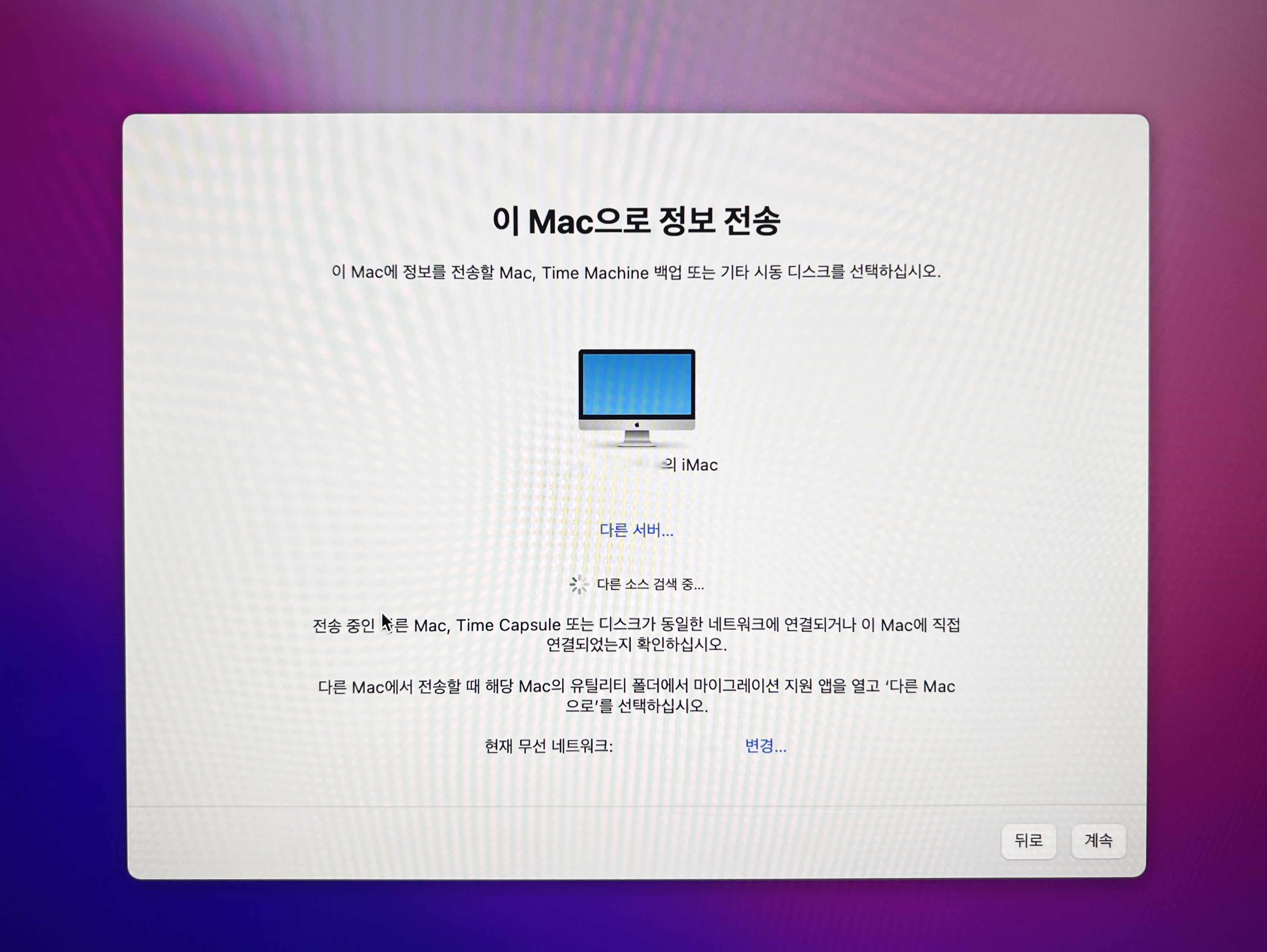 여기에서는 다른 Mac으로를 선택한 후 '계속'버튼을 눌러준다.